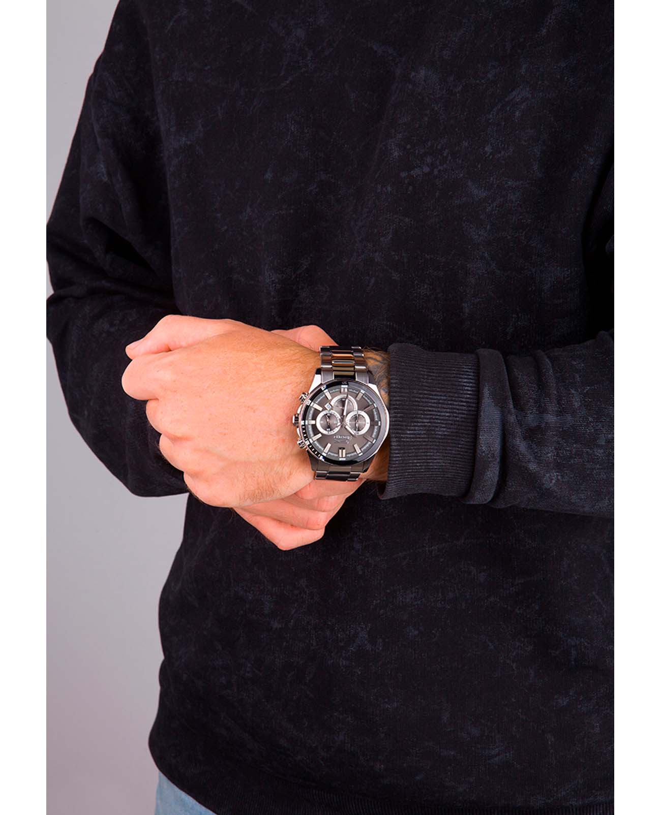 Мужские наручные часы-хронографХронографФункция позволяет измерять отрезки времени с особой точностью: часы, минуты, секунды. Верным признаком хронографа является наличие на циферблате 3 дополнительных окошек-счётчиков. Slazenger SL.09.2078.2.01 сочетают в себе классический дизайн и надежность современных технологий. Модель обладает круглым корпусом диаметром 48 мм, изготовленным из стали с серебристым покрытием, что обеспечивает высокую устойчивость к внешним воздействиям. Браслет выполнен из суперметалла с раскладной застежкойРаскладная застёжкаТакой тип застёжки используется только на браслетах из металла. Она никогда не раскрывается полностью, происходит разделение на 2 и более частей. Раскладывающая застёжка снизит вероятность потери часов к минимуму., гарантирующей комфортное ношение и безопасность. БезельБезельВнешний ободок, закрепляющий стекло. В спортивных часах так называется поворотное кольцо с делениями на циферблате, выполняет роль таймера – замеряет отрезки времени на шкале. Неподвижный безель – элемент декора. Однонаправленно вращающийся безель на дайверских часах позволяет фиксировать моменты погружения и выныривания на поверхность. с IP-покрытиемIP-покрытиеМетод ионного напыления. Демонстрирует повышенную устойчивость к истиранию, окислению и химическим веществам. Под воздействием высокого давления и температуры около 1500°C молекулы металла надёжно соединяются с частицами корпуса часов.. Циферблат серого цвета декорирован стрелками с функцией хронографа, позволяя измерять короткие промежутки времени, а также имеет окошко даты для повседневного использования. Для защиты используется минеральное стеклоМинеральное стеклоМинеральное стекло представляет собой искусственно выращенный минерал кварца. Такое стекло отличается особой устойчивостью к повреждениям и царапинам. Уступает по некоторым качествам сапфировому стеклу., обеспечивающее прочную защиту от царапин. Часы работают на кварцевом механизме, что гарантирует точное время без необходимости подзаводки. Водонепроницаемость часов достигает 50 метров (5 атмосфер), что позволяет использовать их во время плавания, однако не рекомендуется для дайвинга или других водных видов спорта. Вес модели составляет 158 грамм, а производитель предоставляет гарантию сроком 12 месяцев. SL.09.2078.2.01 — это стильный аксессуар, который станет отличным дополнением как формального, так и casual образа мужчины.