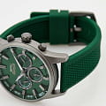 Мужские наручные часы Slazenger SL.09.2107.2.02 сочетают в себе современный дизайн и функциональность для повседневного использования. Модель обладает круглым корпусом диаметром 46 мм, изготовленным из суперметалла c IP-покрытиемIP-покрытиеМетод ионного напыления. Демонстрирует повышенную устойчивость к истиранию, окислению и химическим веществам. Под воздействием высокого давления и температуры около 1500°C молекулы металла надёжно соединяются с частицами корпуса часов., что обеспечивает высокую устойчивость к внешним воздействиям. Ремень выполнен из силикона с классической застежкой, гарантирующей комфортное ношение и безопасность. Зеленый циферблат имеет дополнительные малые циферблаты для отображения даты, дня недели и текущего времени в 24-часовом формате. Стрелки и метки имеют люминесцентное покрытиеЛюминесцентное покрытиеПозволяет считывать показания времени в темноте. Производители наносят на стрелки, часовые индексы, безель или поверхность циферблата светонакопительный состав, дающий холодное свечение., что позволяет легко читать время в темноте. Для защиты используется минеральное стеклоМинеральное стеклоМинеральное стекло представляет собой искусственно выращенный минерал кварца. Такое стекло отличается особой устойчивостью к повреждениям и царапинам. Уступает по некоторым качествам сапфировому стеклу., обеспечивающее высокую устойчивость к царапинам. Часы работают на кварцевом механизме, что гарантирует точное время без необходимости подзаводки. Модель также имеет класс водонепроницаемости WR50 (5 атм), что позволяет использовать их во время плавания без ныряния.