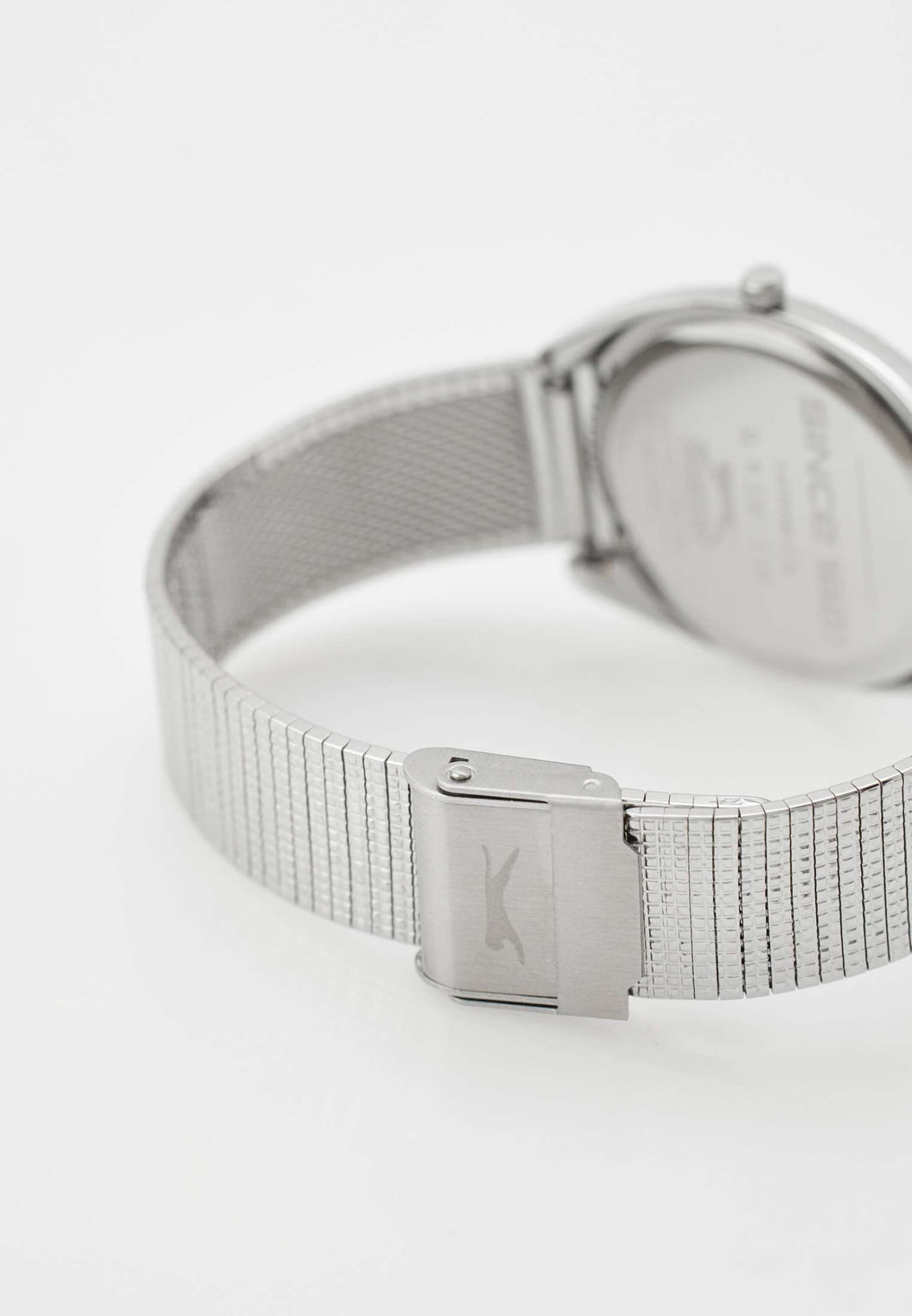Часы Slazenger SL.09.2261.3.05 — это утонченное сочетание современного дизайна и классической элегантности. Изделие оснащено надежным кварцевым механизмом, который обеспечивает точность хода и простоту эксплуатации. Корпус из суперметалла гармонично сочетается с металлическим браслетом аналогичного оттенка и покрытия, подчеркивая изысканность аксессуара и его актуальность в модных тенденциях. Розовый циферблат украшен изысканным гильоше Clous de Paris и дополнен лаконичными метками в виде штрихов, а также фирменным логотипом бренда. Минеральное стеклоМинеральное стеклоМинеральное стекло представляет собой искусственно выращенный минерал кварца. Такое стекло отличается особой устойчивостью к повреждениям и царапинам. Уступает по некоторым качествам сапфировому стеклу. надежно защищает циферблат от случайных царапин. Диаметр корпуса составляет 34 мм, толщина — 8 мм, ширина браслета — 18 мм, а вес часов — всего 54 г, благодаря чему аксессуар удобно сидит на запястье. Стальной браслет c раскладным замкомРаскладной замокДанный вариант застежки используется только на часах с металлическим браслетом. Отличительная особенность такого крепления в том, что длина браслета становится универсальной и вы можете самостоятельно отрегулировать нужный вам размер – застежка просто двигается по браслету часов. удобно фиксируется на запястье и подчёркивает современный характер часов. Водозащита 30WR позволяет не беспокоиться о случайных брызгах. Модель отличается отсутствием секундной стрелки и оснащена рифленой заводной головкой для легкой корректировки времени. Эти часы станут стильным завершением любого образа, подчеркивая индивидуальность и чувство вкуса обладателя.