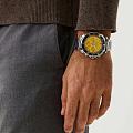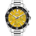 Часы Slazenger SL.09.2273.2.04 – стильный и функциональный аксессуар, который станет достойным дополнением к вашему образу. Модель оснащена надежным кварцевым механизмом, заключенным в корпус из инновационного суперметалла – прочного сплава на основе меди с пониженным содержанием цинка и никеля и специальным покрытием, устойчивым к износу. На безельБезельВнешний ободок, закрепляющий стекло. В спортивных часах так называется поворотное кольцо с делениями на циферблате, выполняет роль таймера – замеряет отрезки времени на шкале. Неподвижный безель – элемент декора. Однонаправленно вращающийся безель на дайверских часах позволяет фиксировать моменты погружения и выныривания на поверхность. нанесено черное IP-покрытиеIP-покрытиеМетод ионного напыления. Демонстрирует повышенную устойчивость к истиранию, окислению и химическим веществам. Под воздействием высокого давления и температуры около 1500°C молекулы металла надёжно соединяются с частицами корпуса часов., что придает аксессуару утончённый и универсальный внешний вид. Желтый циферблат под минеральным стекломМинеральное стеклоМинеральное стекло представляет собой искусственно выращенный минерал кварца. Такое стекло отличается особой устойчивостью к повреждениям и царапинам. Уступает по некоторым качествам сапфировому стеклу. дополнен отдельными счетчиками: 24-часовой указатель времени, индикаторы даты и дня недели. Диаметр корпуса составляет 44 мм, а толщина – 12 мм, что обеспечивает комфортную посадку на запястье и подчёркивает современный стиль часов. Браслет из суперметалла и с раскладной застёжкойРаскладная застёжкаТакой тип застёжки используется только на браслетах из металла. Она никогда не раскрывается полностью, происходит разделение на 2 и более частей. Раскладывающая застёжка снизит вероятность потери часов к минимуму. обеспечивает комфортную посадку. Стрелки и метки с люминесцентным покрытиемЛюминесцентное покрытиеПозволяет считывать показания времени в темноте. Производители наносят на стрелки, часовые индексы, безель или поверхность циферблата светонакопительный состав, дающий холодное свечение. удобно подсвечиваются в темноте после зарядки на свету. Водонепроницаемость 5 АТМ защищает механизм от брызг и дождя, позволяя не беспокоиться о сохранности аксессуара в повседневной жизни. Эта модель станет отличным выбором для ежедневного ношения или особых случаев и прекрасным подарком для мужчины к любому празднику.