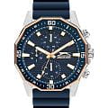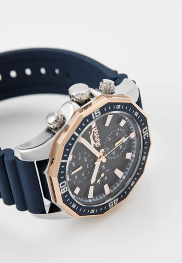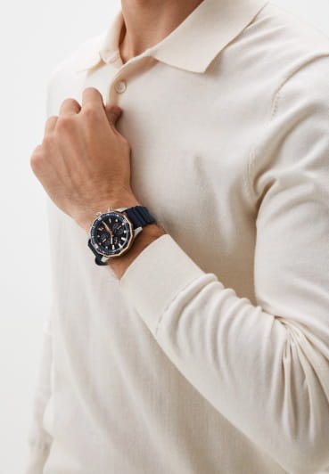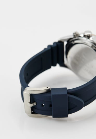 Мужские кварцевые часы Slazenger SL.09.2298.2.03 — это выразительный и функциональный аксессуар, сочетающий прочность, стиль и насыщенную комплектацию. Корпус выполнен из суперметалла с PVD-покрытиемPVDУльтратонкое покрытие наносится в технике вакуумного напыления, сочетает в себе нитрид титана особой прочности со слоем золота или оксида хрома. Несёт в себе декоративную или защитную функцию., а лицевая часть защищена минеральным стекломМинеральное стеклоМинеральное стекло представляет собой искусственно выращенный минерал кварца. Такое стекло отличается особой устойчивостью к повреждениям и царапинам. Уступает по некоторым качествам сапфировому стеклу.. Циферблат синего цвета оформлен с вынесенными малыми циферблатами для индикации дня недели, даты и 24-часового формата времени. Стрелки и метки покрыты люминесцентным покрытиемЛюминесцентное покрытиеПозволяет считывать показания времени в темноте. Производители наносят на стрелки, часовые индексы, безель или поверхность циферблата светонакопительный состав, дающий холодное свечение., что обеспечивает хорошую читаемость в темноте. Заводная головка снабжена защитой, а задняя крышка — завинчивающаяся, что повышает надёжность конструкции. Часы оснащены силиконовым ремешком синего цвета, фиксирующимся на стандартной застёжке. Водонепроницаемость 50 м позволяет использовать часы в повседневных условиях, защищая от случайных брызг и капель дождя. Модель подчёркивает индивидуальность владельца и идеально подходит как для повседневного, так и для спортивного образа.