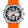 Мужские кварцевые часы Slazenger SL.09.2319.2.07 — это выразительный и функциональный аксессуар, сочетающий стиль, технологичность и насыщенную комплектацию. Корпус выполнен из суперметалла, а циферблат частично скелетонизирован и выполнен в серебристо-чёрных тонах, что позволяет наблюдать за работой механизма. Циферблат защищён минеральным стекломМинеральное стеклоМинеральное стекло представляет собой искусственно выращенный минерал кварца. Такое стекло отличается особой устойчивостью к повреждениям и царапинам. Уступает по некоторым качествам сапфировому стеклу. и дополнен вынесенными малыми циферблатами для индикации дня недели, даты и времени в 24-часовом формате. Стрелки и метки оснащены люминесцентным покрытиемЛюминесцентное покрытиеПозволяет считывать показания времени в темноте. Производители наносят на стрелки, часовые индексы, безель или поверхность циферблата светонакопительный состав, дающий холодное свечение., обеспечивающим хорошую читаемость в темноте. Удобный силиконовый ремешок оранжевого цвета фиксируется на классической пряжке. Водонепроницаемость 50 м позволяет использовать часы в повседневных условиях, защищая от случайных брызг и капель дождя. Модель подчёркивает индивидуальность владельца и идеально подходит как для повседневного, так и для спортивного образа.