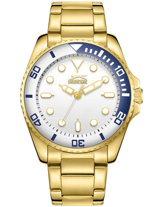 Slazenger SL.09.2352.1.02 — стильные мужские часы, сочетающие современный дизайн и функциональность. Корпус выполнен из суперметалла с PVD-покрытиемPVDУльтратонкое покрытие наносится в технике вакуумного напыления, сочетает в себе нитрид титана особой прочности со слоем золота или оксида хрома. Несёт в себе декоративную или защитную функцию., обеспечивающей прочность и долговечность. Минеральное стеклоМинеральное стеклоМинеральное стекло представляет собой искусственно выращенный минерал кварца. Такое стекло отличается особой устойчивостью к повреждениям и царапинам. Уступает по некоторым качествам сапфировому стеклу. защищает циферблат от царапин и гарантирует превосходную читаемость.БезельБезельВнешний ободок, закрепляющий стекло. В спортивных часах так называется поворотное кольцо с делениями на циферблате, выполняет роль таймера – замеряет отрезки времени на шкале. Неподвижный безель – элемент декора. Однонаправленно вращающийся безель на дайверских часах позволяет фиксировать моменты погружения и выныривания на поверхность. с PVD-покрытиемPVDУльтратонкое покрытие наносится в технике вакуумного напыления, сочетает в себе нитрид титана особой прочности со слоем золота или оксида хрома. Несёт в себе декоративную или защитную функцию.. Циферблат с контрастными метками и стрелками подчёркивает элегантный стиль модели. Браслет из суперметалла с PVD-покрытиемPVDУльтратонкое покрытие наносится в технике вакуумного напыления, сочетает в себе нитрид титана особой прочности со слоем золота или оксида хрома. Несёт в себе декоративную или защитную функцию.. обеспечивает комфортное ношение и надёжную фиксацию на запястье. Функциональность дополняется индикацией даты, повышая удобство использования. Водонепроницаемость 50 метров делает модель устойчивой к случайным брызгам, идеально подходя для повседневного использования.