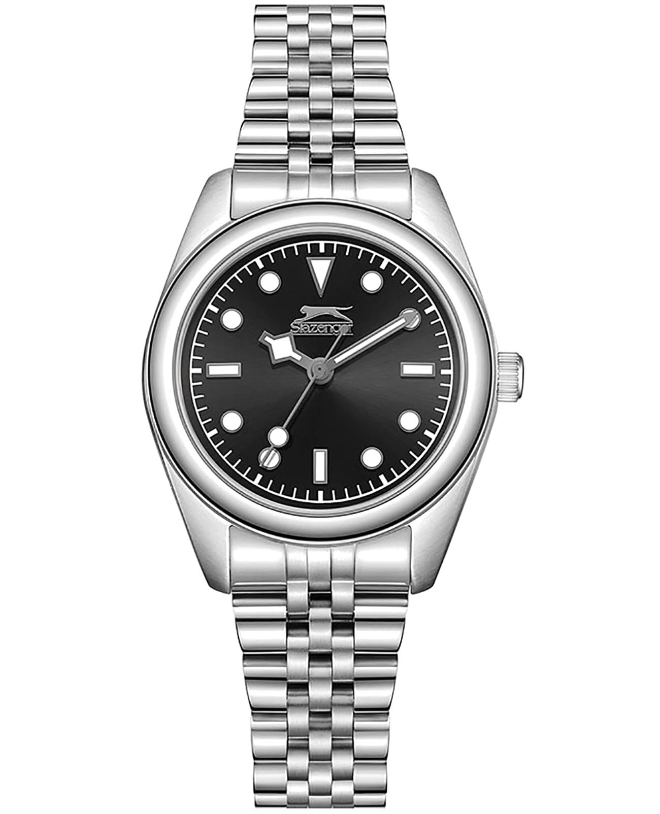 Женские кварцевые часы Slazenger SL.09.2355.3.02 – это сочетание элегантности, современного стиля и надёжности. Изящный корпус из суперметалла серебристого цвета, диаметром 31 мм и толщиной 10 мм, подчёркивает утончённость модели и делает их идеальным аксессуаром для любой ситуации – будь то деловая встреча, романтический вечер или повседневные выходы. Циферблат надёжно защищён минеральным стекломМинеральное стеклоМинеральное стекло представляет собой искусственно выращенный минерал кварца. Такое стекло отличается особой устойчивостью к повреждениям и царапинам. Уступает по некоторым качествам сапфировому стеклу., которое устойчиво к механическим повреждениям и сохраняет кристальную прозрачность. Браслет из суперметалла удобно облегает запястье и фиксируется с помощью раскладной застёжкиРаскладная застёжкаТакой тип застёжки используется только на браслетах из металла. Она никогда не раскрывается полностью, происходит разделение на 2 и более частей. Раскладывающая застёжка снизит вероятность потери часов к минимуму., обеспечивая надёжность и комфорт в повседневном ношении. Утончённый стиль, внимание к деталям и практичность делают эту модель идеальным выбором для современных женщин, ценящих эстетику и функциональность. Стрелки и метки покрыты люминесцентным покрытиемЛюминесцентное покрытиеПозволяет считывать показания времени в темноте. Производители наносят на стрелки, часовые индексы, безель или поверхность циферблата светонакопительный состав, дающий холодное свечение., обеспечивающим отличную читаемость в темноте. Водозащита до 30 метров позволит защитить корпус от случайных брызг или капель дождя.