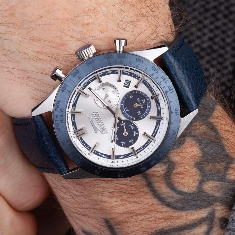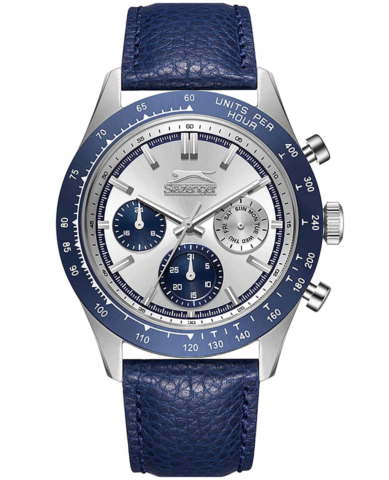 Мужские кварцевые часы Slazenger SL.09.2359.2.05 – идеальное сочетание классического дизайна и современных технологий, созданное для уверенных в себе мужчин. Корпус выполнен из суперметалла серебристого цвета, диаметром 43 мм и толщиной 11 мм, подчёркивает надежность модели и делает их идеальным аксессуаром для любой ситуации – будь то деловая встреча или повседневные выходы. Циферблат надёжно защищён минеральным стекломМинеральное стеклоМинеральное стекло представляет собой искусственно выращенный минерал кварца. Такое стекло отличается особой устойчивостью к повреждениям и царапинам. Уступает по некоторым качествам сапфировому стеклу., которое устойчиво к механическим повреждениям и сохраняет кристальную прозрачность. Неподвижный безельБезельВнешний ободок, закрепляющий стекло. В спортивных часах так называется поворотное кольцо с делениями на циферблате, выполняет роль таймера – замеряет отрезки времени на шкале. Неподвижный безель – элемент декора. Однонаправленно вращающийся безель на дайверских часах позволяет фиксировать моменты погружения и выныривания на поверхность. с IP-покрытиемIP-покрытиеМетод ионного напыления. Демонстрирует повышенную устойчивость к истиранию, окислению и химическим веществам. Под воздействием высокого давления и температуры около 1500°C молекулы металла надёжно соединяются с частицами корпуса часов. синего цвета. Кожаный ремешок на стандартной застёжке удобно облегает запястье, обеспечивая надёжность и комфорт в повседневном ношении. Стрелки покрыты люминесцентным покрытиемЛюминесцентное покрытиеПозволяет считывать показания времени в темноте. Производители наносят на стрелки, часовые индексы, безель или поверхность циферблата светонакопительный состав, дающий холодное свечение., обеспечивающим отличную читаемость в темноте. Эти часы станут не просто аксессуаром, а надежным спутником в любой ситуации, подчеркивая ваш безупречный вкус и деловой стиль. Вынесенный циферблат с 24-х часовым указателем времени и функция тахиметраТахиметрРазмеченная шкала, располагается на ободке или безеле часов. Тахиметр позволяет рассчитать скорость на определённом участке пути, расстояние измеряется в километрах или милях.. Водозащита 50 метров позволит защитить корпус от случайных брызг или капель дождя.