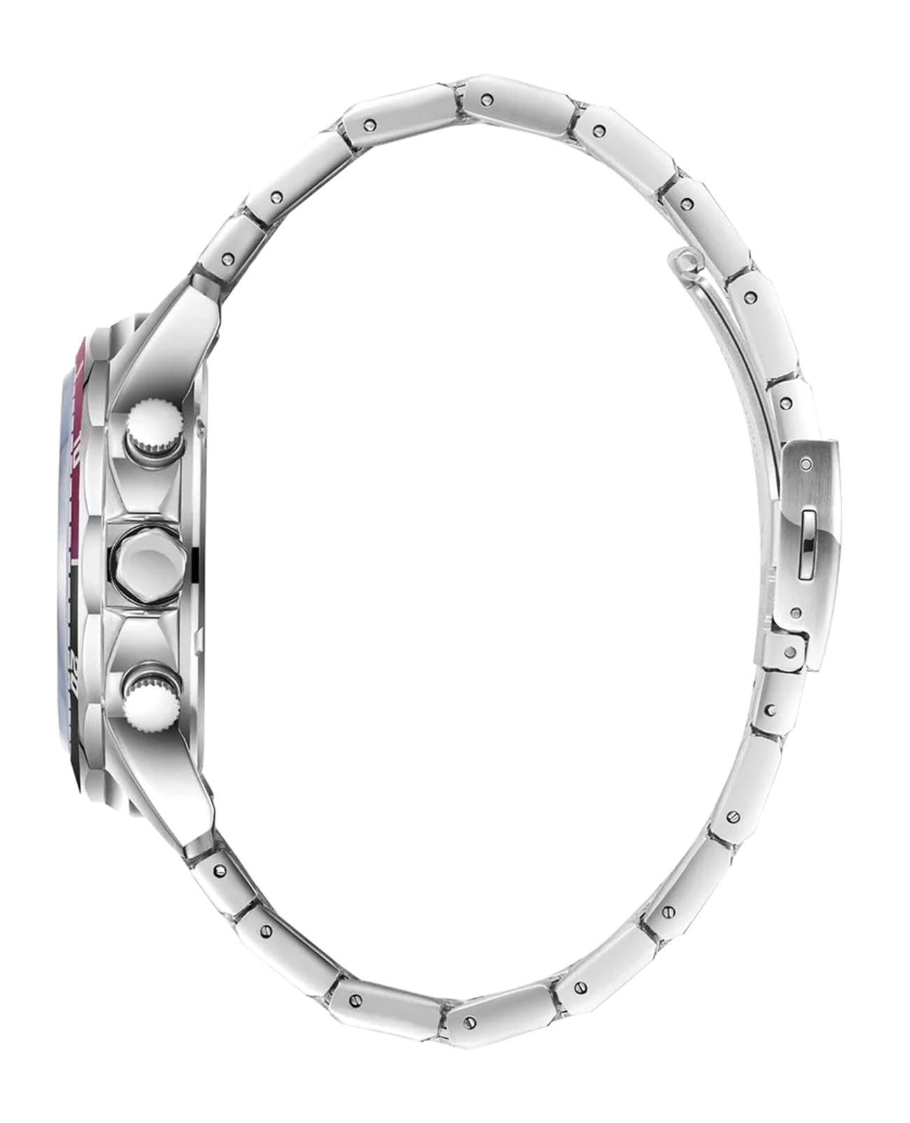Мужские кварцевые часы Slazenger — это выразительный и функциональный аксессуар. Корпус диаметром 41,5 мм и толщиной 13 мм выполнен из суперметалла. Циферблат чёрного цвета оформлен индексами и стрелками. Циферблат защищён минеральным стекломМинеральное стеклоМинеральное стекло представляет собой искусственно выращенный минерал кварца. Такое стекло отличается особой устойчивостью к повреждениям и царапинам. Уступает по некоторым качествам сапфировому стеклу.. Механизм — кварцевый. Часы оснащены индикацией дня недели, даты и 12/24-часового формата времени. Стрелки и метки с люминесцентным покрытиемЛюминесцентное покрытиеПозволяет считывать показания времени в темноте. Производители наносят на стрелки, часовые индексы, безель или поверхность циферблата светонакопительный состав, дающий холодное свечение., обеспечивающим хорошую читаемость в темноте. Часы оснащены браслетом из суперметалла с раскладной застёжкойРаскладная застёжкаТакой тип застёжки используется только на браслетах из металла. Она никогда не раскрывается полностью, происходит разделение на 2 и более частей. Раскладывающая застёжка снизит вероятность потери часов к минимуму.. Водонепроницаемость 100 м позволяет использовать часы для плавания и повседневного ношения. Гарантия — 12 месяцев. Идеальный выбор для тех, кто ценит стиль, функциональность и качество.