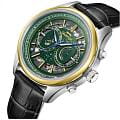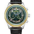Мужские механические часы с автоподзаводом Slazenger — это выразительный и функциональный аксессуар. Корпус диаметром 41 мм и толщиной 16 мм выполнен из нержавеющей стали 316L. БезельБезельВнешний ободок, закрепляющий стекло. В спортивных часах так называется поворотное кольцо с делениями на циферблате, выполняет роль таймера – замеряет отрезки времени на шкале. Неподвижный безель – элемент декора. Однонаправленно вращающийся безель на дайверских часах позволяет фиксировать моменты погружения и выныривания на поверхность. с IP-покрытиемIP-покрытиеМетод ионного напыления. Демонстрирует повышенную устойчивость к истиранию, окислению и химическим веществам. Под воздействием высокого давления и температуры около 1500°C молекулы металла надёжно соединяются с частицами корпуса часов.. Циферблат зелёного цвета частично скелетонизирован, что позволяет наблюдать за работой механизма. Циферблат защищён минеральным стекломМинеральное стеклоМинеральное стекло представляет собой искусственно выращенный минерал кварца. Такое стекло отличается особой устойчивостью к повреждениям и царапинам. Уступает по некоторым качествам сапфировому стеклу.. Механизм — автоматический. Часы оснащены индикацией дня недели, даты и 12/24-часового формата времени. Прозрачная задняя крышка открывает вид на декорированный механизм. Часы оснащены кожаным ремешком с застёжкой «бабочка» с кнопкамиЗастёжка "бабочка"Такой вид застёжки дополняется предохранителями, помогающими избежать случайного раскрытия браслета. Обладают изящным исполнением. . Водонепроницаемость 100 м позволяет использовать часы для плавания и повседневного ношения. Гарантия — 12 месяцев. Идеальный выбор для тех, кто ценит стиль, функциональность и качество.