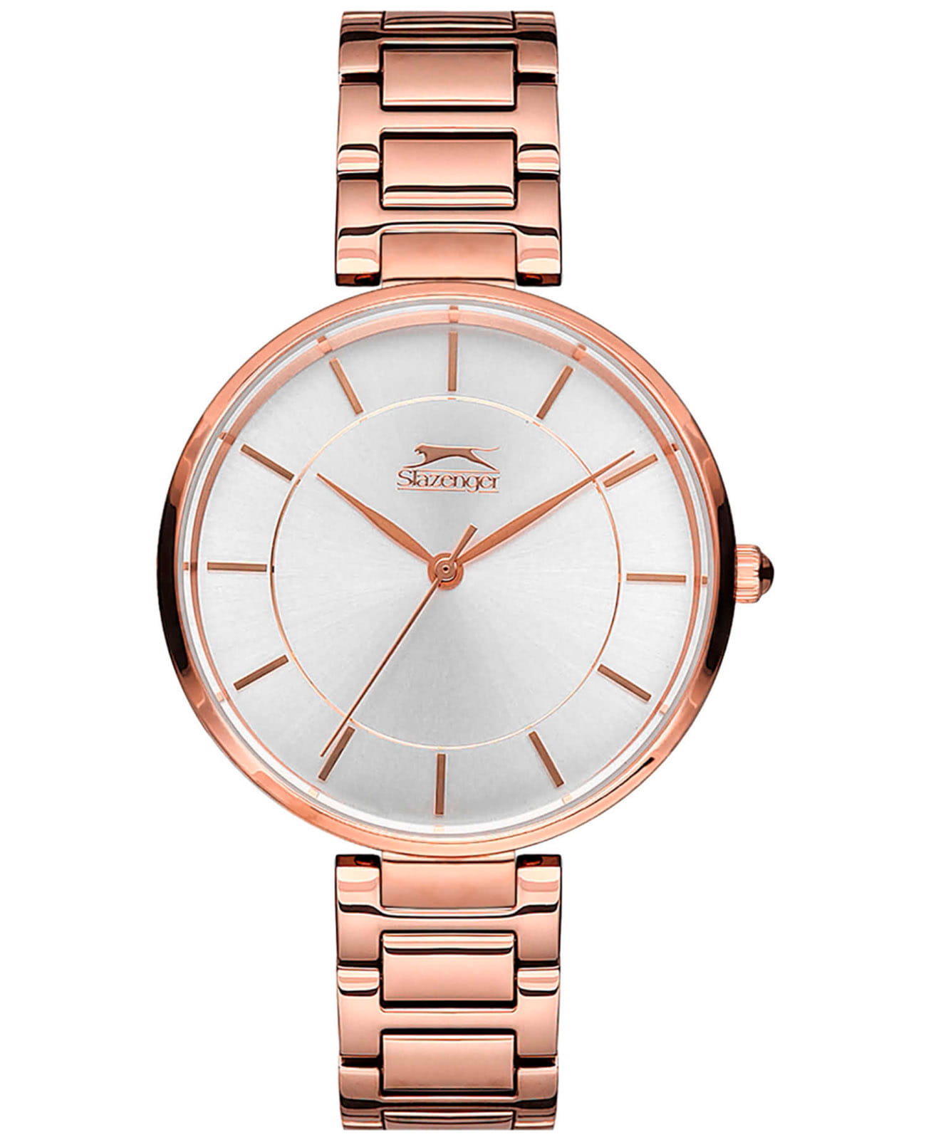 Женские кварцевые часы Slazenger — это элегантный аксессуар, который станет отличным дополнением к стилю. Корпус диаметром 34 мм и толщиной 8 мм выполнен из суперметалла с IP-покрытиемIP-покрытиеМетод ионного напыления. Демонстрирует повышенную устойчивость к истиранию, окислению и химическим веществам. Под воздействием высокого давления и температуры около 1500°C молекулы металла надёжно соединяются с частицами корпуса часов.. Циферблат серебристого цвета оформлен индексами и стрелками. Циферблат защищён минеральным стекломМинеральное стеклоМинеральное стекло представляет собой искусственно выращенный минерал кварца. Такое стекло отличается особой устойчивостью к повреждениям и царапинам. Уступает по некоторым качествам сапфировому стеклу.. Механизм — кварцевый калибр Miyota 2035. Часы оснащены браслетом из суперметалла с раскладной застёжкойРаскладная застёжкаТакой тип застёжки используется только на браслетах из металла. Она никогда не раскрывается полностью, происходит разделение на 2 и более частей. Раскладывающая застёжка снизит вероятность потери часов к минимуму.. Водонепроницаемость 30 м позволяет использовать часы в повседневных условиях. Идеальный выбор для тех, кто ценит стиль и качество.