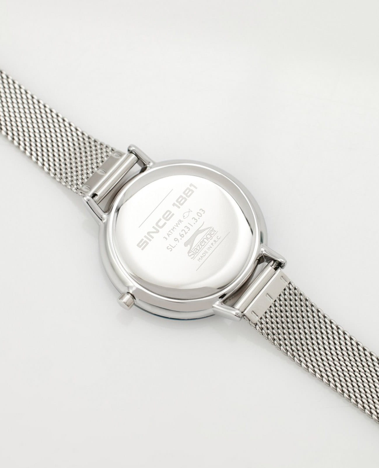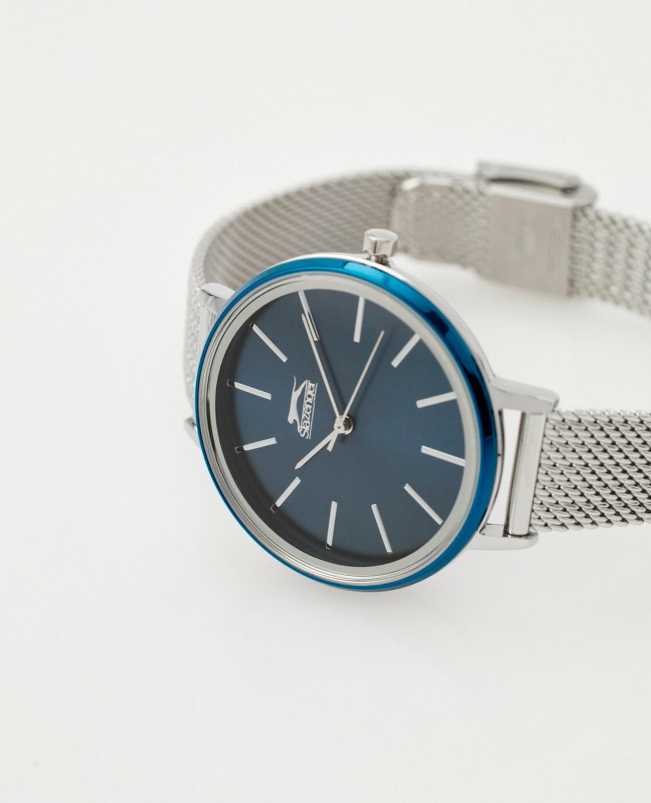 Женские кварцевые часы Slazenger — это элегантный аксессуар с браслетом миланского плетения. Корпус диаметром 38 мм и толщиной 9 мм выполнен из суперметалла. Циферблат синего цвета оформлен индексами и стрелками. Циферблат защищён минеральным стекломМинеральное стеклоМинеральное стекло представляет собой искусственно выращенный минерал кварца. Такое стекло отличается особой устойчивостью к повреждениям и царапинам. Уступает по некоторым качествам сапфировому стеклу.. Механизм — кварцевый калибр Miyota 2035. Часы оснащены браслетом из суперметалла миланского плетения с раскладной застёжкойРаскладная застёжкаТакой тип застёжки используется только на браслетах из металла. Она никогда не раскрывается полностью, происходит разделение на 2 и более частей. Раскладывающая застёжка снизит вероятность потери часов к минимуму.. Водонепроницаемость 30 м позволяет использовать часы в повседневных условиях. Идеальный выбор для тех, кто ценит стиль и качество.
