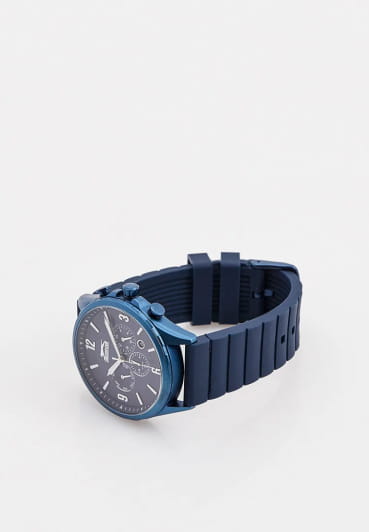 Мужские кварцевые часы Slazenger — это выразительный и функциональный аксессуар. Корпус диаметром 46 мм и толщиной 11 мм выполнен из суперметалла с IP-покрытиемIP-покрытиеМетод ионного напыления. Демонстрирует повышенную устойчивость к истиранию, окислению и химическим веществам. Под воздействием высокого давления и температуры около 1500°C молекулы металла надёжно соединяются с частицами корпуса часов.. Циферблат синего цвета оформлен индексами, стрелками и двумя вынесенными субциферблатами: для отображения дня недели и 24-часового формата времени. Окошко даты расположено между 4 и 5 часами. Присутствует указатель второго часового пояса (GMTВторой часовой поясФункция, позволяющая отображать время двух часовых поясов одновременно.). Циферблат защищён минеральным стекломМинеральное стеклоМинеральное стекло представляет собой искусственно выращенный минерал кварца. Такое стекло отличается особой устойчивостью к повреждениям и царапинам. Уступает по некоторым качествам сапфировому стеклу.. Часы оснащены силиконовым ремешком на классической пряжке. Водонепроницаемость 50 м позволяет использовать часы в повседневных условиях. Идеальный выбор для тех, кто ценит стиль и качество.