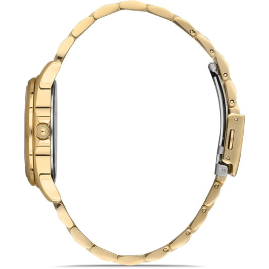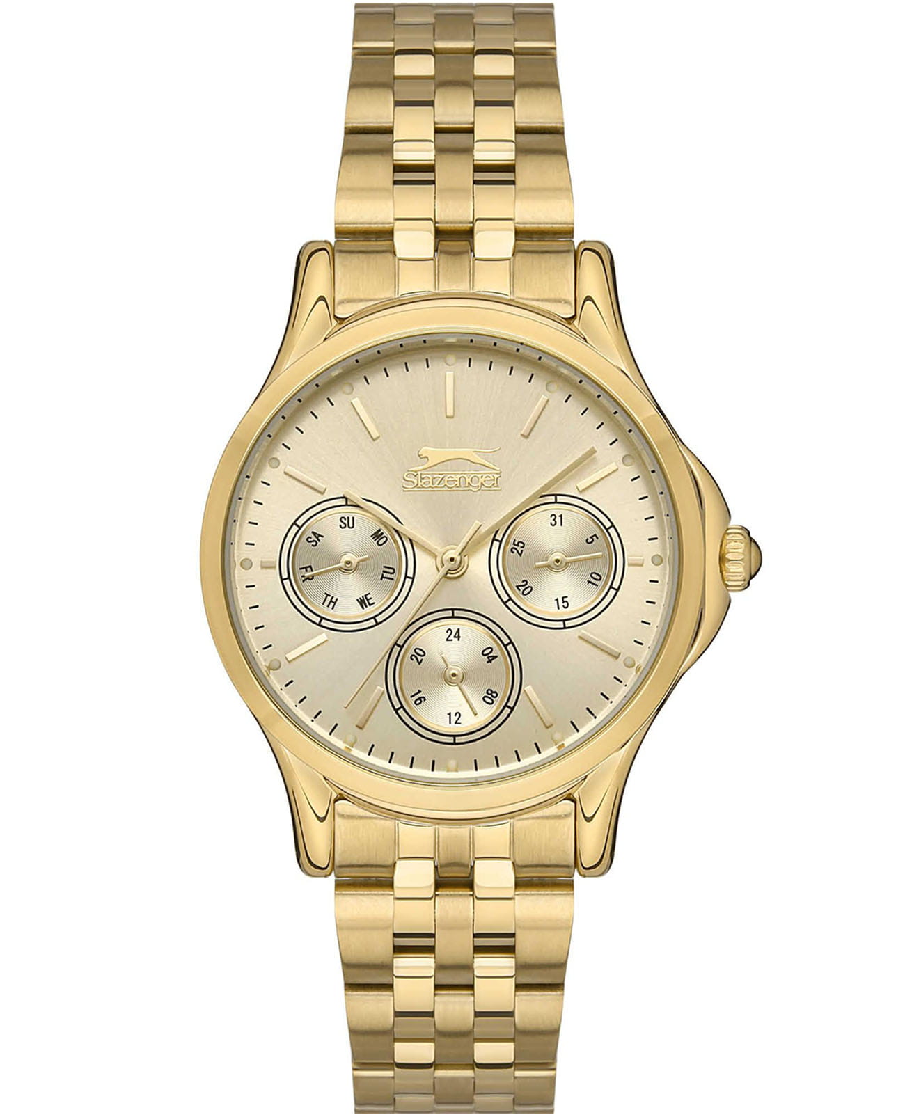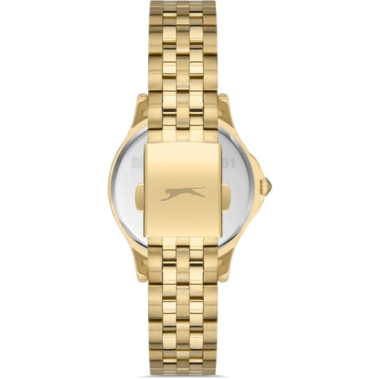 Женские наручные часы Slazenger SL.09.6569.4.03 сочетают в себе элегантный дизайн и практичность современных технологий. Модель обладает круглым корпусом диаметром 34 мм, изготовленным из суперметалла с IP-покрытиемIP-покрытиеМетод ионного напыления. Демонстрирует повышенную устойчивость к истиранию, окислению и химическим веществам. Под воздействием высокого давления и температуры около 1500°C молекулы металла надёжно соединяются с частицами корпуса часов., что обеспечивает высокую устойчивость к внешним воздействиям. Браслет выполнен из того же материала с раскладной застежкойРаскладная застёжкаТакой тип застёжки используется только на браслетах из металла. Она никогда не раскрывается полностью, происходит разделение на 2 и более частей. Раскладывающая застёжка снизит вероятность потери часов к минимуму., гарантирующей комфортное ношение. Изысканный циферблат оснащен индексами для лучшей читаемости времени и дополнен функцией отображения даты, а также дня недели на малых циферблатах. Для защиты применяется минеральное стеклоМинеральное стеклоМинеральное стекло представляет собой искусственно выращенный минерал кварца. Такое стекло отличается особой устойчивостью к повреждениям и царапинам. Уступает по некоторым качествам сапфировому стеклу., обеспечивающее прочную защиту от царапин. Часы работают на японском кварцевом механизме, который питается от батарейки и гарантирует точное время без необходимости подзаводки. Водонепроницаемость составляет 3 атмосферы (30 метров), что позволяет использовать их в повседневной жизни, но не рекомендуется для плавания или занятий водными видами спорта.