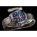 Внутри установлен швейцарский кварцевый механизм, обеспечивающий высокую точность хода. Функции хронографаХронографФункция позволяет измерять отрезки времени с особой точностью: часы, минуты, секунды. Верным признаком хронографа является наличие на циферблате 3 дополнительных окошек-счётчиков. включают секундомер до 12 часов, отображение даты, 24-часовой формат времени и второй часовой пояс.