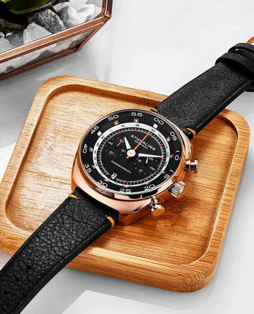 Мужские наручные часы-хронографХронографФункция позволяет измерять отрезки времени с особой точностью: часы, минуты, секунды. Верным признаком хронографа является наличие на циферблате 3 дополнительных окошек-счётчиков. Stuhrling 1000.03 из коллекции Monaco сочетают в себе спортивный дизайн и функциональность, необходимую для активного образа жизни . Модель обладает круглым корпусом, изготовленным из нержавеющей стали с PVD-покрытиемPVDУльтратонкое покрытие наносится в технике вакуумного напыления, сочетает в себе нитрид титана особой прочности со слоем золота или оксида хрома. Несёт в себе декоративную или защитную функцию., что обеспечивает высокую устойчивость к внешним воздействиям. Циферблат оснащен накладными метками в виде штрихов и окном даты в положении «6 часов», что добавляет практичности в ежедневном использовании . Для защиты циферблата используется стекло KrysternaKrysternaKrysterna — инновационное стекло для наручных часов. Благодаря уникальной структуре, Krysterna объединяет ключевые преимущества двух материалов: твердость сапфира, защищающую от царапин, и гибкость минерального стекла, обеспечивающую устойчивость к деформациям. Такая комбинация делает его идеальным решением для часов, подверженных экстремальным нагрузкам, сохраняя при этом оптическую прозрачность., которое надежно защищает от царапин и механических повреждений. Часы оснащены функцией секундомераСекундомерСекундоме́р — прибор, способный измерять интервалы времени с точностью до долей секунды., позволяющей измерять короткие промежутки времени с точностью . Стрелки с люминесцентным покрытиемЛюминесцентное покрытиеПозволяет считывать показания времени в темноте. Производители наносят на стрелки, часовые индексы, безель или поверхность циферблата светонакопительный состав, дающий холодное свечение.. Ремешок выполнен из кожи с классической застежкой, гарантирующей комфортное ношение . Кварцевый механизм обеспечивает высокую точность хода без необходимости подзаводки, что делает использование часов максимально удобным . Водонепроницаемость модели достигает 5 атмосфер (50 метров), что позволяет использовать их в повседневной жизни, однако они не предназначены для плавания или дайвинга . Спортивный дизайн и широкий функционал делают эти часы универсальным аксессуаром для активных людей.