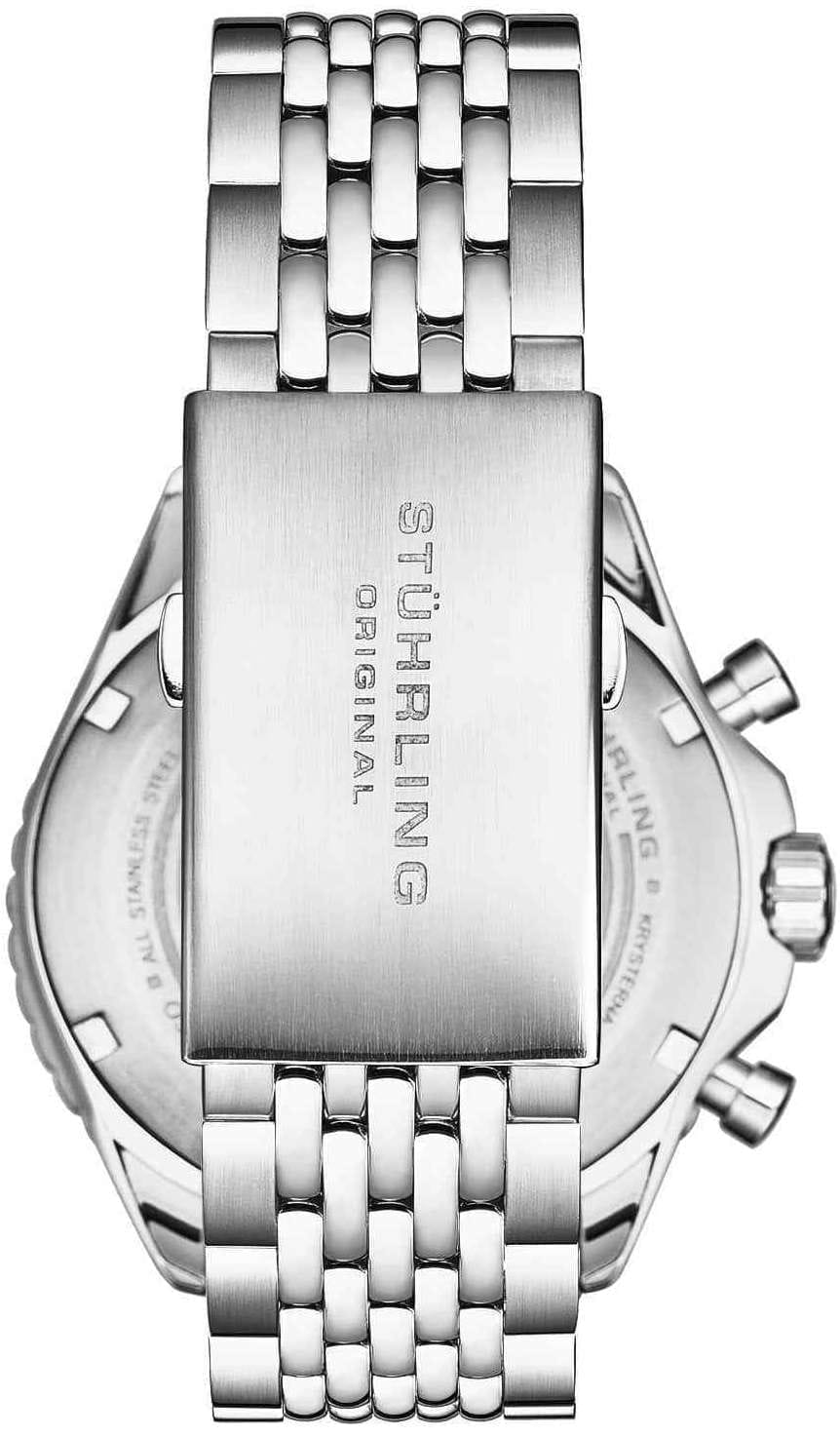 Stuhrling 1010.03 — мощные мужские часы с выразительным спортивным характером и динамичным дизайном. Корпус из нержавеющей стали гармонично сочетается с циферблатом, оформленным рельефным узором и контрастными счётчиками хронографаХронографФункция позволяет измерять отрезки времени с особой точностью: часы, минуты, секунды. Верным признаком хронографа является наличие на циферблате 3 дополнительных окошек-счётчиков.. Широкий безельБезельВнешний ободок, закрепляющий стекло. В спортивных часах так называется поворотное кольцо с делениями на циферблате, выполняет роль таймера – замеряет отрезки времени на шкале. Неподвижный безель – элемент декора. Однонаправленно вращающийся безель на дайверских часах позволяет фиксировать моменты погружения и выныривания на поверхность. с PVD-покрытиемPVDУльтратонкое покрытие наносится в технике вакуумного напыления, сочетает в себе нитрид титана особой прочности со слоем золота или оксида хрома. Несёт в себе декоративную или защитную функцию. подчёркивает брутальный стиль модели, а стрелки и метки с люминесцентным покрытиемЛюминесцентное покрытиеПозволяет считывать показания времени в темноте. Производители наносят на стрелки, часовые индексы, безель или поверхность циферблата светонакопительный состав, дающий холодное свечение. обеспечивают идеальную читаемость в любых условиях. Прочное стекло KrysternaKrysternaKrysterna — инновационное стекло для наручных часов. Благодаря уникальной структуре, Krysterna объединяет ключевые преимущества двух материалов: твердость сапфира, защищающую от царапин, и гибкость минерального стекла, обеспечивающую устойчивость к деформациям. Такая комбинация делает его идеальным решением для часов, подверженных экстремальным нагрузкам, сохраняя при этом оптическую прозрачность. устойчиво к царапинам, сохраняя прозрачность и блеск. Завершает образ стальной браслет с раскладной застёжкойРаскладная застёжкаТакой тип застёжки используется только на браслетах из металла. Она никогда не раскрывается полностью, происходит разделение на 2 и более частей. Раскладывающая застёжка снизит вероятность потери часов к минимуму., гарантирующий комфорт и надёжную фиксацию. Stuhrling — стильная и функциональная модель для уверенных мужчин, ценящих точность и энергию в каждой детали.