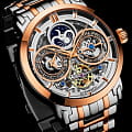 Мужские наручные часы Stührling Original 371B.05 из коллекции Luciano Automatic Skeleton сочетают в себе классический дизайн и современные технологии . Модель оснащена механическим механизмом с автоподзаводом, что гарантирует точность хода без необходимости ручного завода . Корпус часов диаметром 46 мм изготовлен из нержавеющей стали, что подчеркивает элегантность модели . БезельБезельВнешний ободок, закрепляющий стекло. В спортивных часах так называется поворотное кольцо с делениями на циферблате, выполняет роль таймера – замеряет отрезки времени на шкале. Неподвижный безель – элемент декора. Однонаправленно вращающийся безель на дайверских часах позволяет фиксировать моменты погружения и выныривания на поверхность. с PVD-покрытиемPVDУльтратонкое покрытие наносится в технике вакуумного напыления, сочетает в себе нитрид титана особой прочности со слоем золота или оксида хрома. Несёт в себе декоративную или защитную функцию.. Защиту циферблата обеспечивает прочное стекло KrysternaKrysternaKrysterna — инновационное стекло для наручных часов. Благодаря уникальной структуре, Krysterna объединяет ключевые преимущества двух материалов: твердость сапфира, защищающую от царапин, и гибкость минерального стекла, обеспечивающую устойчивость к деформациям. Такая комбинация делает его идеальным решением для часов, подверженных экстремальным нагрузкам, сохраняя при этом оптическую прозрачность., известное своей устойчивостью к царапинам и механическим повреждениям . Циферблат выполнен в стиле , что позволяет наблюдать за работой внутреннего механизма и демонстрирует сложность инженерного решения . Такой дизайн делает модель не только функциональной, но и стильной, привлекая внимание ценителей сложных технических решений. Часы оснащены функцией второго часового поясаВторой часовой поясФункция, позволяющая отображать время двух часовых поясов одновременно. и анимированным индикатором AM/PM в виде солнца и луны, что делает их удобными для путешественников . Водонепроницаемость модели достигает 5 атмосфер (50 метров), что позволяет использовать их в повседневных условиях, включая контакт с водой, например, при мытье рук или дожде . Заводная головка с системой завинчивания обеспечивает дополнительную защиту механизма от внешних воздействий.