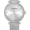 Женские наручные часы Stührling Original 3904.1 из коллекции Vogue — это элегантная модель, сочетающая классический дизайн и современные технологии . Часы относятся к категории dress watch (деловые часы), что делает их идеальным выбором для повседневного использования или особых случаев. Корпус часов диаметром 38 мм изготовлен из высококачественной нержавеющей стали, что обеспечивает надежность и устойчивость к внешним воздействиям . Толщина корпуса составляет всего 8,25 мм, что делает модель изящной и комфортной для ношения . Защиту циферблата обеспечивает прочное стекло KrysternaKrysternaKrysterna — инновационное стекло для наручных часов. Благодаря уникальной структуре, Krysterna объединяет ключевые преимущества двух материалов: твердость сапфира, защищающую от царапин, и гибкость минерального стекла, обеспечивающую устойчивость к деформациям. Такая комбинация делает его идеальным решением для часов, подверженных экстремальным нагрузкам, сохраняя при этом оптическую прозрачность., известное своей устойчивостью к царапинам и механическим повреждениям. Часы оснащены кварцевым механизмом, обеспечивающим точность хода без необходимости ручного завода. Браслет миланского плетения из того же матеариала на раскладном замкеРаскладной замокДанный вариант застежки используется только на часах с металлическим браслетом. Отличительная особенность такого крепления в том, что длина браслета становится универсальной и вы можете самостоятельно отрегулировать нужный вам размер – застежка просто двигается по браслету часов.. Эта модель станет стильным аксессуаром для женщин, ценящих элегантность и практичность в повседневной жизни .