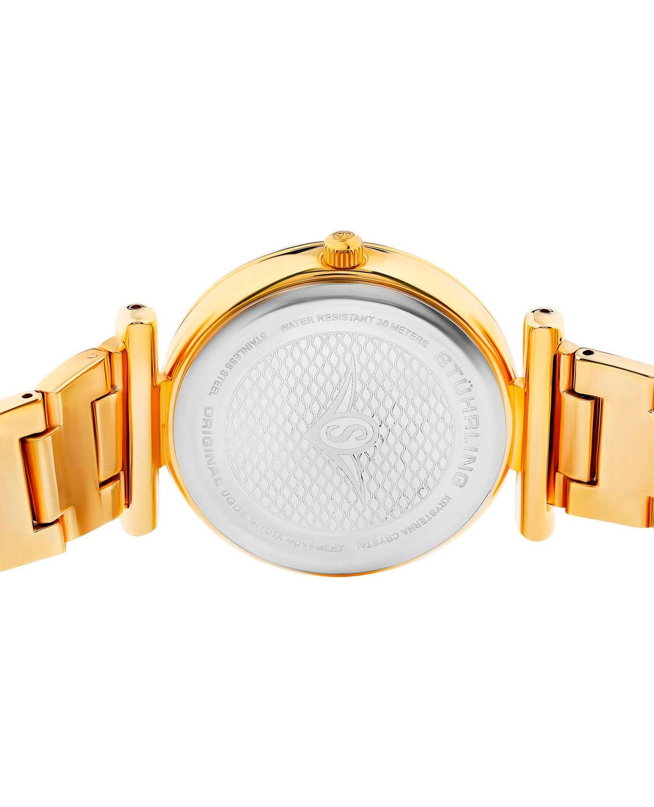 Женские наручные часы Stuhrling 3905.4 сочетают в себе элегантный дизайн и функциональность. Модель обладает круглым корпусом диаметром 36,0 мм, изготовленным из нержавеющей стали с желтым PVD-покрытиемPVDУльтратонкое покрытие наносится в технике вакуумного напыления, сочетает в себе нитрид титана особой прочности со слоем золота или оксида хрома. Несёт в себе декоративную или защитную функцию., что обеспечивает прочность и устойчивость к внешним воздействиям . Браслет из того же материала на раскладной застёжкеРаскладная застёжкаТакой тип застёжки используется только на браслетах из металла. Она никогда не раскрывается полностью, происходит разделение на 2 и более частей. Раскладывающая застёжка снизит вероятность потери часов к минимуму.. Черный циферблат украшен римскими цифрами и накладными метками, подчеркивающими классический стиль модели . Для защиты используется стекло KrysternaKrysternaKrysterna — инновационное стекло для наручных часов. Благодаря уникальной структуре, Krysterna объединяет ключевые преимущества двух материалов: твердость сапфира, защищающую от царапин, и гибкость минерального стекла, обеспечивающую устойчивость к деформациям. Такая комбинация делает его идеальным решением для часов, подверженных экстремальным нагрузкам, сохраняя при этом оптическую прозрачность., обеспечивающее повышенную устойчивость к царапинам и надежную защиту циферблата . Часы работают на кварцевом механизме, что гарантирует точное время без необходимости подзаводки . Водонепроницаемость часов составляет 50WR, что позволяет использовать их в повседневной жизни, включая контакт с водой, например, при мытье рук, но не рекомендуется для плавания или дайвинга . Модель покоряет своей изысканностью и станет идеальным аксессуаром для любой модницы, предпочитающей стильные и качественные аксессуары .