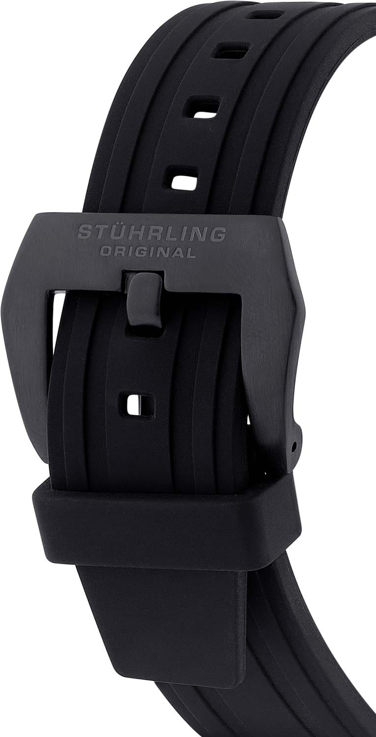 Stuhrling 984.02 — эффектные мужские часы с ярким спортивным характером и футуристичным дизайном. Корпус из нержавеющей стали с чёрным PVD-покрытиемPVDУльтратонкое покрытие наносится в технике вакуумного напыления, сочетает в себе нитрид титана особой прочности со слоем золота или оксида хрома. Несёт в себе декоративную или защитную функцию. придаёт модели выразительный матовый оттенок и повышенную устойчивость к царапинам. Циферблат выполнен в виде стилизованного ротора, где акценты насыщенного цвета создают ощущение движения и энергии. Прочный силиконовый ремешок обеспечивает комфорт и долговечность, а стекло KrysternaKrysternaKrysterna — инновационное стекло для наручных часов. Благодаря уникальной структуре, Krysterna объединяет ключевые преимущества двух материалов: твердость сапфира, защищающую от царапин, и гибкость минерального стекла, обеспечивающую устойчивость к деформациям. Такая комбинация делает его идеальным решением для часов, подверженных экстремальным нагрузкам, сохраняя при этом оптическую прозрачность. надёжно защищает поверхность от повреждений. Stuhrling — часы для тех, кто выбирает технологичный стиль и мощную эстетику в каждой детали.
