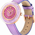 Элегантные швейцарские часы Swarovski 5656896 станут идеальным аксессуаром для тех, кто ценит стиль и изысканность. Эти часы оснащены кварцевым механизмом, что гарантирует точность и надежность в повседневной жизни. Корпус из стали PVDPVDУльтратонкое покрытие наносится в технике вакуумного напыления, сочетает в себе нитрид титана особой прочности со слоем золота или оксида хрома. Несёт в себе декоративную или защитную функцию. покрытием оттенка розового золота имеет классическую круглую форму, а розово-фиолетовый циферблат, лишенный меток, создает смелый и дерзкий образ. Особое внимание привлекают 3460 кристаллов Swarovski розового и фиолетового цвета, которые украшают циферблат, корпус и безельБезельВнешний ободок, закрепляющий стекло. В спортивных часах так называется поворотное кольцо с делениями на циферблате, выполняет роль таймера – замеряет отрезки времени на шкале. Неподвижный безель – элемент декора. Однонаправленно вращающийся безель на дайверских часах позволяет фиксировать моменты погружения и выныривания на поверхность., создавая ослепительный блеск. В положении 12 часов расположился культовый логотип Swarovski в виде лебедя, подчеркивающий уникальность дизайна. Мечевидные стрелки в стиле Sword добавляют элегантности, а граненая заводная головка с кристаллом круглой огранки завершает образ. Ремешок из натуральной итальянской телячьей кожи ярко-фиолетового цвета обеспечивает комфортное ношение и дополняет общий стиль часов. Классическая застежка с логотипом Swarovski гарантирует надежную фиксацию. Сапфировое стеклоСапфировое стеклоПрочный и надёжный материал из кристалла сапфира синтетического происхождения, характеризующийся особой твёрдостью и устойчивостью к царапинам и повреждениям. защищает часы от царапин и других повреждений, а водозащита 50WR позволяет не беспокоиться о случайных попаданиях воды. Диаметр корпуса составляет 33 мм, а длина ремешка — 16,5 см, что делает их идеальными для изящного запястья.