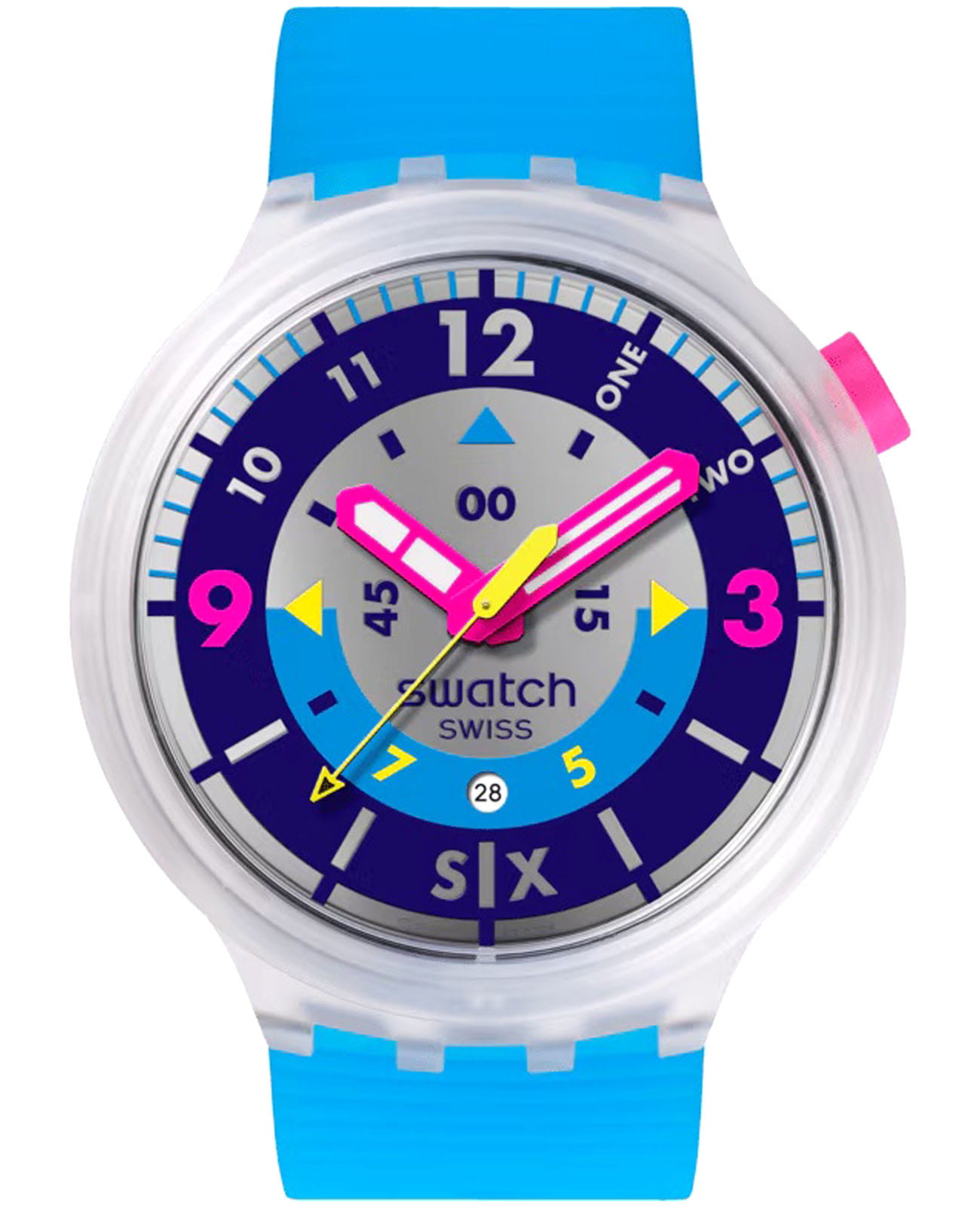 Женские наручные часы Swatch SWATCH NEON HIELO SB01K400 — это стильный и современный аксессуар для тех, кто ценит лёгкость и комфорт. Коллекционные часы выполненные в стиле ретро, вдохновлены стилем ЛЕДИ Swatch 90-х годов. Корпус выполнен из пластика диаметром 47 мм и толщиной 11.75 мм, что обеспечивает долговечность и утончённый внешний вид. Циферблат защищён органическим стеклом, устойчивым к повреждениям. Модель оснащена кварцевым механизмом, обеспечивающим высокую точность хода. Розовые часовая и минутная стрелки с люминесцентным покрытиемЛюминесцентное покрытиеПозволяет считывать показания времени в темноте. Производители наносят на стрелки, часовые индексы, безель или поверхность циферблата светонакопительный состав, дающий холодное свечение.. Окошко даты находится в положении 6 часов. Силиконовый ремешок на стандартной застёжке гармонично дополняет корпус и обеспечивает комфортное ношение. Водозащита 30 метров делает часы практичными для повседневного использования. Эти часы подойдут для повседневного ношения и станут ярким акцентом в вашем наряде.