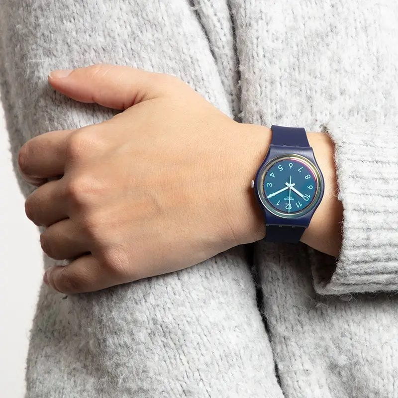 Часы Swatch SO28N110 — это стильный и современный аксессуар, который идеально подходит для повседневного ношения. Они имеют классический дизайн корпуса и необычный цвет стекла. Корпус часов выполнен из высококачественного темно-синего биоматериала, что делает их легкими и удобными. Циферблат украшен арабскими цифрами и покрыт стеклом с эффектом солнечного спектра. Стекло часов изготовлено из прочного хезалита, который устойчив к царапинам и ударам, что гарантирует долговечность изделия. Ремешок часов выполнен из биоматериала и имеет регулируемую длину, что позволяет удобно носить их на запястье. Внутри часов установлен надежный кварцевый механизм, который обеспечивает точность хода. Эти часы водонепроницаемы до 30 метров, что позволяет не беспокоиться о случайных брызгах или дождевых каплях. Swatch SO28N110 — это идеальный выбор для тех, кто ценит сочетание стиля, комфорта и функциональности в одном аксессуаре.