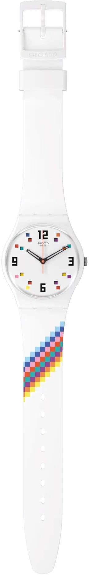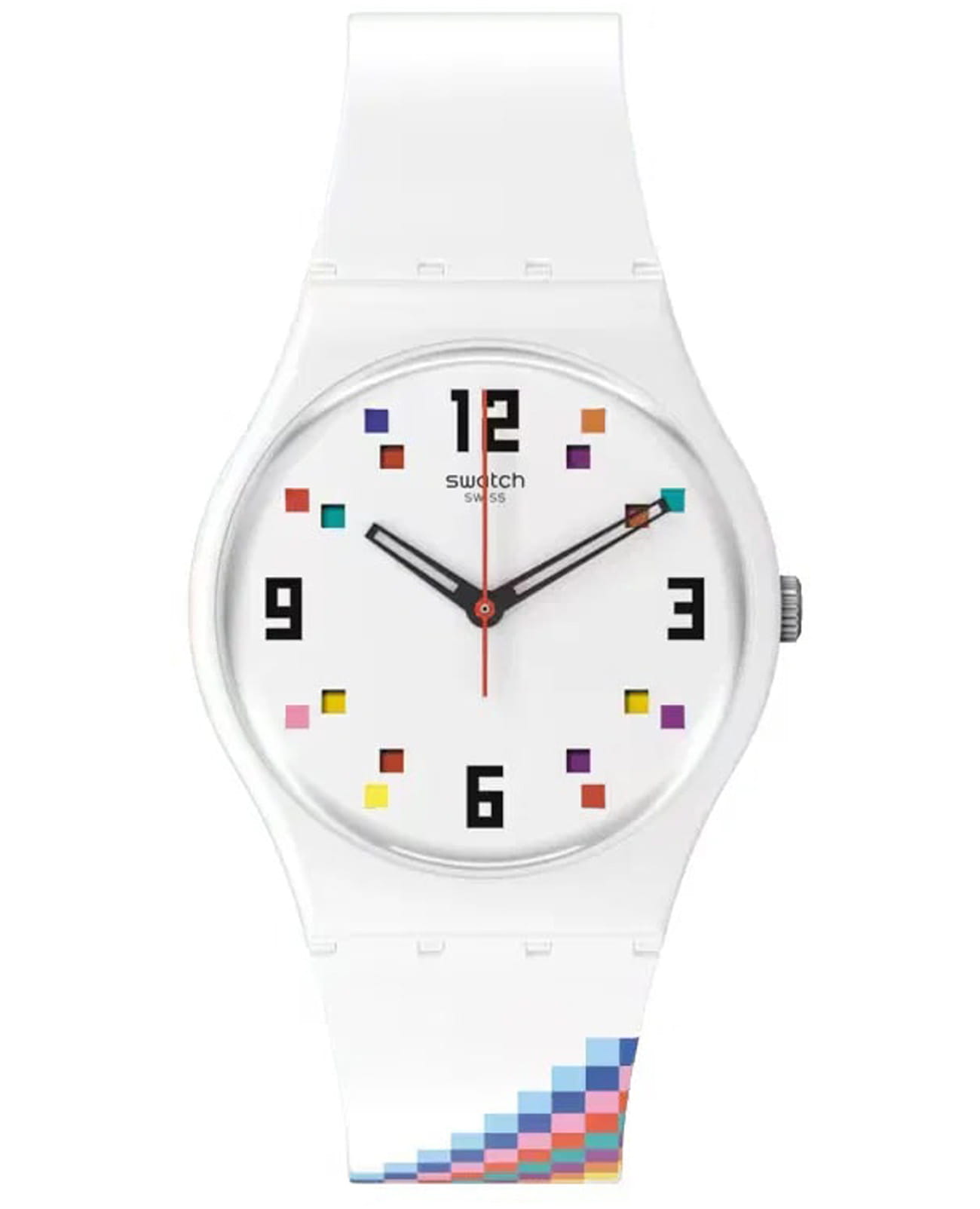 Часы Swatch SO28W700 — это стильный и современный аксессуар, который идеально подходит для повседневного ношения. Эти часы имеют прочный матовый белый ремешок с принтом и корпус из биоматериала с белым и многоцветным циферблатом. Специальный механизм календарного колеса позволяет пиксельному дизайну на циферблате менять цвета один раз в день. Черные скелетные стрелки указывают время. Ремешок часов белого цвета с пиксельным рисунком выполнен из силикона и имеет регулируемую длину, на классической застежке. Внутри часов установлен надежный кварцевый механизм, который обеспечивает точность хода. Эти часы водонепроницаемы до 30 метров, что позволяет не беспокоиться о случайных брызгах или дождевых каплях. Swatch SO28W700 — это идеальный выбор для тех, кто ценит сочетание стиля, комфорта и функциональности в одном аксессуаре.