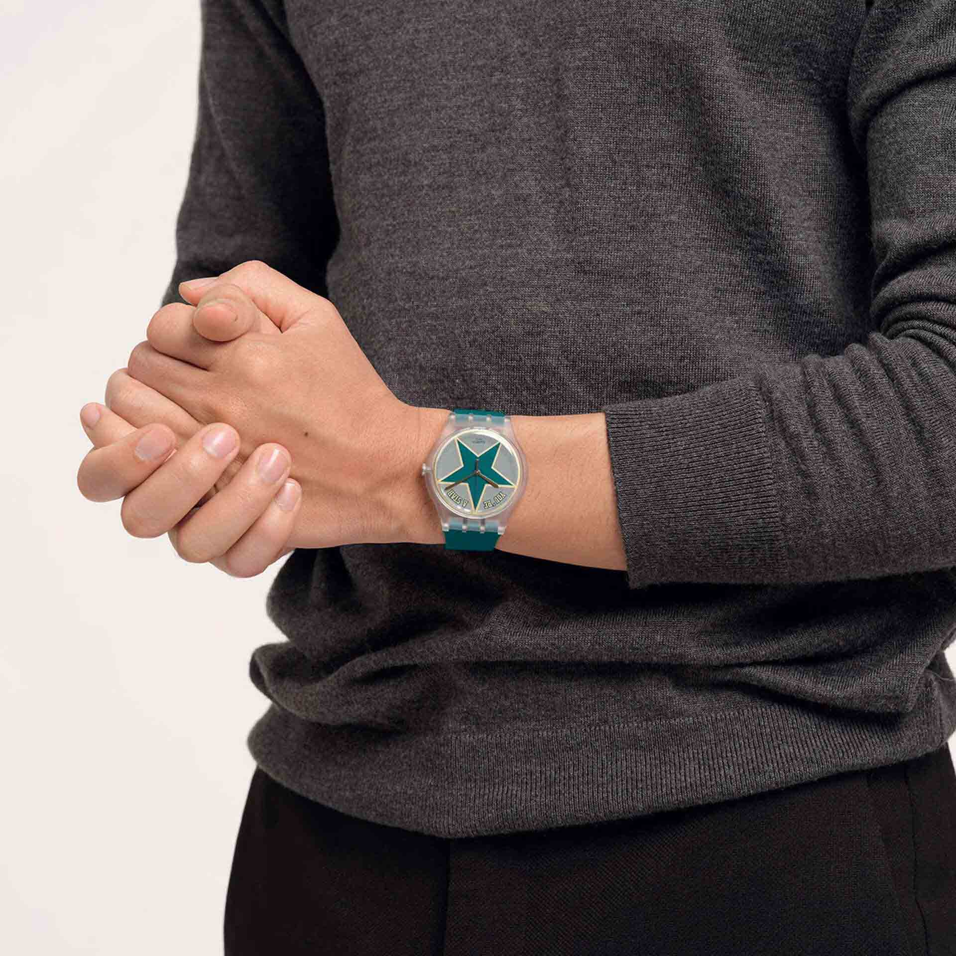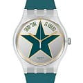 Часы Swatch SO29Z119 — стильный и надежный аксессуар. Модель часов выпущена ко Дню отца, имеет надпись "YOU’RE A STAR" ("ТЫ ЗВЕЗДА"). Корпус матовый полупрозрачный из биоматериала, циферблат серый зеркальный с зелено-золотой звездой. Зеленый ремешок из силикона с двумя однотонными тренчиками. В комплекте также четыре дополнительных тренчика из прозрачного силикона с принтом в виде эмоджи. Циферблат покрыт биостеклом. Ремешок на классической застежке. Внутри часов установлен надежный кварцевый механизм, который обеспечивает точность хода. Эти часы водонепроницаемы до 30 метров, что позволяет не беспокоиться о случайных брызгах или дождевых каплях. Swatch SO29Z119 — это идеальный выбор для тех, кто ценит сочетание стиля, комфорта и функциональности в одном аксессуаре.