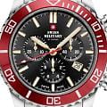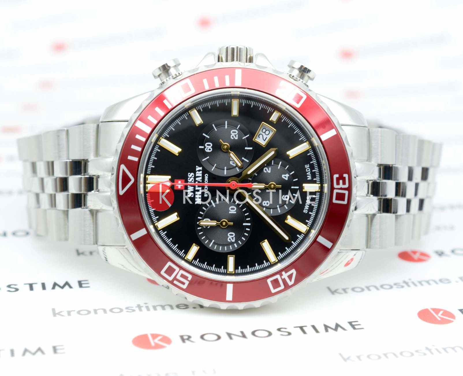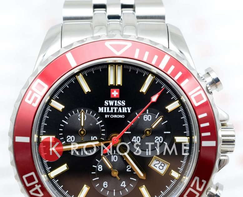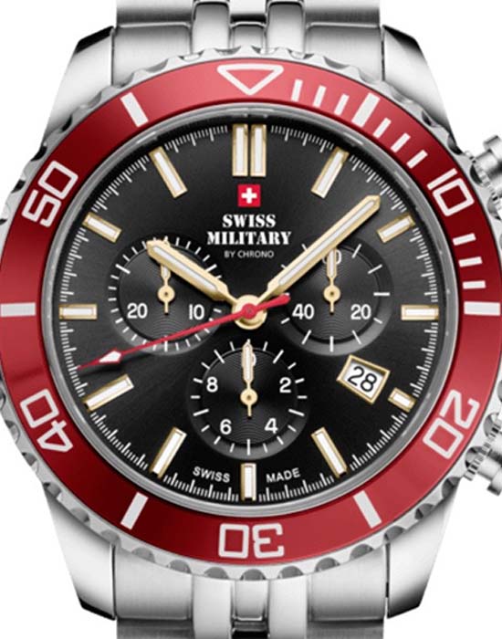 Часы Swiss Military SM34103.03 — это спортивный хронограф, сочетающий стиль и функциональность. Корпус диаметром 43 мм выполнен из нержавеющей стали, что обеспечивает долговечность и надёжность. Циферблат с солнечным узором украшен белыми люминесцентными индексамиЛюминесцентное покрытиеПозволяет считывать показания времени в темноте. Производители наносят на стрелки, часовые индексы, безель или поверхность циферблата светонакопительный состав, дающий холодное свечение. и стрелками, что позволяет легко считывать время в любых условиях. Защиту циферблата обеспечивает сапфировое стеклоСапфировое стеклоПрочный и надёжный материал из кристалла сапфира синтетического происхождения, характеризующийся особой твёрдостью и устойчивостью к царапинам и повреждениям., устойчивое к царапинам. Модель оснащена вращающимся безелемБезельВнешний ободок, закрепляющий стекло. В спортивных часах так называется поворотное кольцо с делениями на циферблате, выполняет роль таймера – замеряет отрезки времени на шкале. Неподвижный безель – элемент декора. Однонаправленно вращающийся безель на дайверских часах позволяет фиксировать моменты погружения и выныривания на поверхность. с PVD-покрытиемPVDУльтратонкое покрытие наносится в технике вакуумного напыления, сочетает в себе нитрид титана особой прочности со слоем золота или оксида хрома. Несёт в себе декоративную или защитную функцию., что добавляет дополнительную функциональность. Водозащита до 10 ATM делает часы подходящими для плавания и других водных активностей. Швейцарский кварцевый механизм Ronda 5040.D обеспечивает высокую точность измерения времени и функции хронографа. Браслет из нержавеющей стали с матовой и полированной отделкой и раскладной застёжкойРаскладная застёжкаТакой тип застёжки используется только на браслетах из металла. Она никогда не раскрывается полностью, происходит разделение на 2 и более частей. Раскладывающая застёжка снизит вероятность потери часов к минимуму. гарантирует комфортное ношение и надёжную фиксацию. Часы сопровождаются 5-летней международной гарантией, подтверждающей их высокое качество и надёжность. Swiss Military — это идеальный выбор для мужчин, которые ценят швейцарское качество и ведут активный образ жизни.