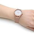 Наручные часы Timex TW2V01400 — это изысканный аксессуар, который станет завершающим штрихом в образе современной амбициозной девушки с утонченным вкусом. Эта модель из США сочетает в себе стиль и функциональность, предлагая кварцевый механизм для надежной точности. Корпус часов выполнен из латуни с розовым PVDPVDУльтратонкое покрытие наносится в технике вакуумного напыления, сочетает в себе нитрид титана особой прочности со слоем золота или оксида хрома. Несёт в себе декоративную или защитную функцию. покрытием, придающим изделию элегантность и современный вид. Серебристый циферблат с эффектом Glitter украшен узкими клиновидными стрелками в стиле Dauphine и метками в виде штрихов, что обеспечивает легкость считывания времени. Рифленая заводная головка добавляет утонченности и завершенности дизайну. Стальной миланский браслет с розовым PVDPVDУльтратонкое покрытие наносится в технике вакуумного напыления, сочетает в себе нитрид титана особой прочности со слоем золота или оксида хрома. Несёт в себе декоративную или защитную функцию. покрытием не только удобен, но и надежен благодаря регулируемом раскладном замкеРаскладной замокДанный вариант застежки используется только на часах с металлическим браслетом. Отличительная особенность такого крепления в том, что длина браслета становится универсальной и вы можете самостоятельно отрегулировать нужный вам размер – застежка просто двигается по браслету часов., который обеспечивает комфортную посадку на запястье. Водозащита 50WR делает часы устойчивыми к влаге, что позволяет использовать их в различных условиях. Минеральное стеклоМинеральное стеклоМинеральное стекло представляет собой искусственно выращенный минерал кварца. Такое стекло отличается особой устойчивостью к повреждениям и царапинам. Уступает по некоторым качествам сапфировому стеклу. защищает циферблат от царапин и повреждений, сохраняя его первоначальный вид. Диаметр корпуса составляет 32 мм, а ширина браслета — 16 мм, что делает часы изящными и подходящими для любого случая.
