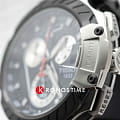 Задняя крышка имеет гравировку - номер, под которым выступает знаменитый спортсмен. Броская модель с оригинальным исполнением циферблата станет отличительной деталью вашего образа, динамичности придаёт красная секундная стрелка. Всё напоминает о гоночных мотоциклах. Необычный безельБезельВнешний ободок, закрепляющий стекло. В спортивных часах так называется поворотное кольцо с делениями на циферблате, выполняет роль таймера – замеряет отрезки времени на шкале. Неподвижный безель – элемент декора. Однонаправленно вращающийся безель на дайверских часах позволяет фиксировать моменты погружения и выныривания на поверхность. имитирует тормозной диск, счётчики хронографаХронографФункция позволяет измерять отрезки времени с особой точностью: часы, минуты, секунды. Верным признаком хронографа является наличие на циферблате 3 дополнительных окошек-счётчиков. сделаны под приборную панель, узор ремешка навевает мысли о протекторе шины. Высокую точность хода обеспечивает кварцевый калибр ETA G10.212. Сапфировое стекло с антибликовым покрытием. Чёрное PVD-покрытиеPVDУльтратонкое покрытие наносится в технике вакуумного напыления, сочетает в себе нитрид титана особой прочности со слоем золота или оксида хрома. Несёт в себе декоративную или защитную функцию.. Люминесцентная подсветкаЛюминесцентное покрытиеПозволяет считывать показания времени в темноте. Производители наносят на стрелки, часовые индексы, безель или поверхность циферблата светонакопительный состав, дающий холодное свечение.. Водонепроницаемость 100 метров. Секундомер, тахиметрТахиметрРазмеченная шкала, располагается на ободке или безеле часов. Тахиметр позволяет рассчитать скорость на определённом участке пути, расстояние измеряется в километрах или милях., отображение даты. Эксклюзивная упаковка в виде шлема. Габариты: 47,6 x 43 x 12,3 мм.