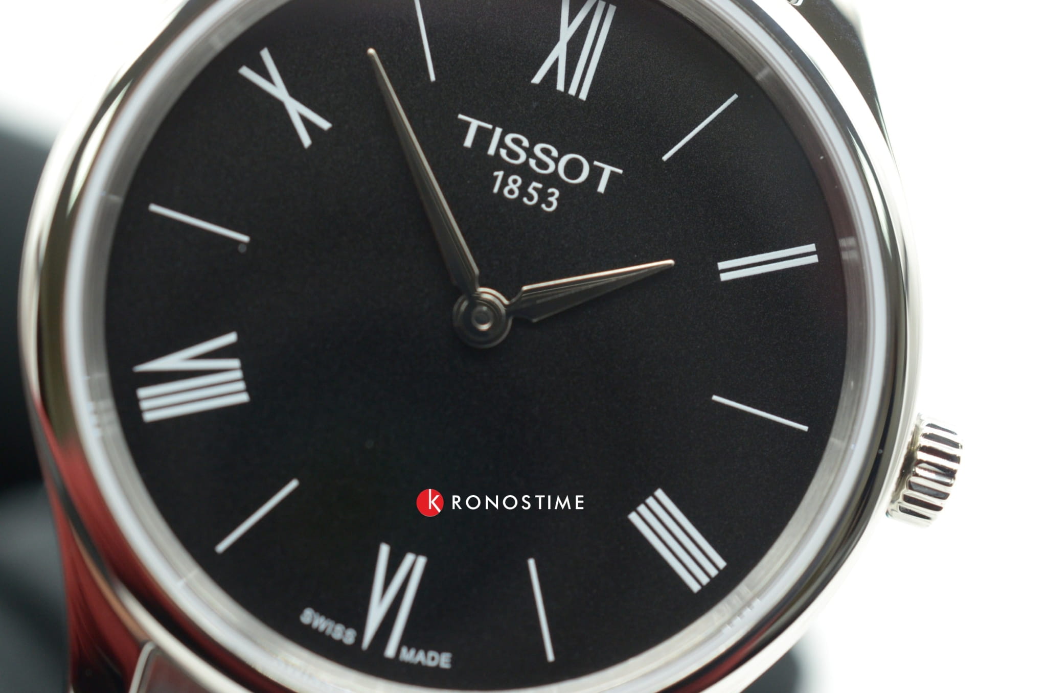 Сдержанный чёрный циферблат с римскими цифрами позволяет не задумываться о подборе одежды, можно использовать самые смелые сочетания, ведь универсальный облик модели подойдёт ко всему. Кварцевый механизм ETA E61.031 с 8 камнями и высокой точностью хода. Надёжное сапфировое стекло. . Габариты: 31 x 31 x 5,15 мм.