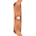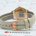 Минималистичный циферблат с PVD-покрытиемPVDУльтратонкое покрытие наносится в технике вакуумного напыления, сочетает в себе нитрид титана особой прочности со слоем золота или оксида хрома. Несёт в себе декоративную или защитную функцию. розового золота станет лучшим решением для дополнения классического или вечернего образа. Дизайнерская модель имеет ремешок из натуральной кожи кремового оттенка. Кварцевый механизм ETA 980.153 с высокой точностью хода. Надёжное сапфировое стекло. Функция EOLEOLПредставляет собой систему, уведомляющую владельца часов о необходимости замены элемента питания. За 2 недели до полного разряда батарейки секундная стрелка перестаёт ходить чётко и начинает перепрыгивать на 3-4 деления., отображение текущего числа.