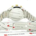 Мужской хронографХронографФункция позволяет измерять отрезки времени с особой точностью: часы, минуты, секунды. Верным признаком хронографа является наличие на циферблате 3 дополнительных окошек-счётчиков. не только позволяет измерять временные промежутки с особой точностью, но и выполняет роль элегантного аксессуара. Циферблат цвета шампань сразу бросается в глаза, три дополнительных счётчика привносят в общий облик модели спортивный стиль. Наручные часы изготовлены из нержавеющей стали с PVD-покрытиемPVDУльтратонкое покрытие наносится в технике вакуумного напыления, сочетает в себе нитрид титана особой прочности со слоем золота или оксида хрома. Несёт в себе декоративную или защитную функцию., тяжесть материала приятно ощущается на запястье и не доставляет неудобств. Кварцевый механизм ETA G10.212. Люминесцентная подсветка. Высокие показатели водозащиты. Габариты: 45 x 45 x 11 мм. Производство и сборка: Швейцария.