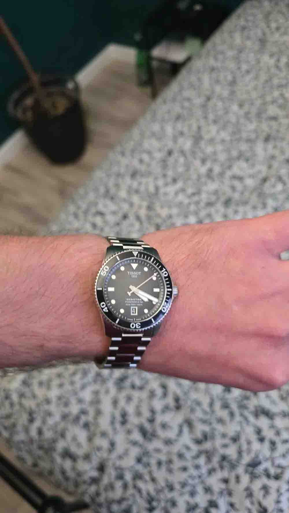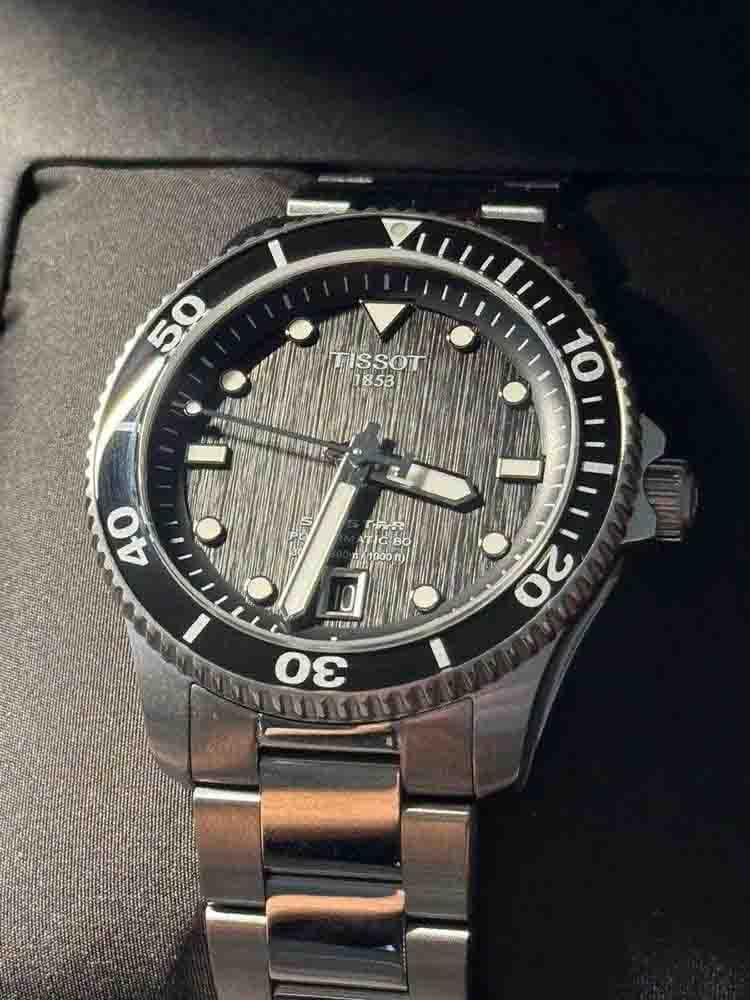 Очень сильно переживал за оригинальность часов. При получении все проверил, серийник на оф. сайте Tissot бьется. Здесь точно можно брать без опаски. Касательно самих часов, долго их выбирал, смотрел вживую и не ошибся. 40 мм самое то: и под повседневный образ подойдут и под сорочку. Если брать диаметр больше – появляется эффект будильника, примотанного к руке (они сильно вырастают в высоту при увеличении диаметра). Также очень интересные есть с лазурным циферблатом, эти поспокойнее всё-таки.