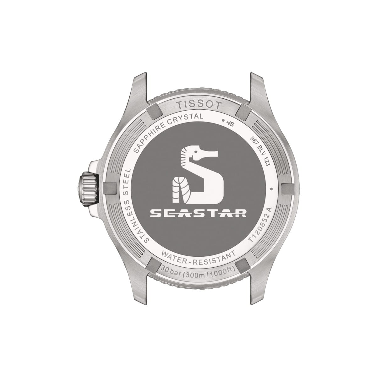 Мужские кварцевые часы Tissot Seastar 1000 Quartz Gmt T120.852.22.051.00. Корпус часов изготовлен из нержавеющей стали 316L. Сапфировое стеклоСапфировое стеклоПрочный и надёжный материал из кристалла сапфира синтетического происхождения, характеризующийся особой твёрдостью и устойчивостью к царапинам и повреждениям. устойчивое к появлению царапин, обладающее высокой прозрачностью. Класс водозащиты: 300 метров, позволит плавать, нырять и заниматься другими водными видами спорта. Вращающийся стальной безельБезельВнешний ободок, закрепляющий стекло. В спортивных часах так называется поворотное кольцо с делениями на циферблате, выполняет роль таймера – замеряет отрезки времени на шкале. Неподвижный безель – элемент декора. Однонаправленно вращающийся безель на дайверских часах позволяет фиксировать моменты погружения и выныривания на поверхность. с PVD-покрытиемPVDУльтратонкое покрытие наносится в технике вакуумного напыления, сочетает в себе нитрид титана особой прочности со слоем золота или оксида хрома. Несёт в себе декоративную или защитную функцию.. Стрелки и метки с люминесцентным покрытиемЛюминесцентное покрытиеПозволяет считывать показания времени в темноте. Производители наносят на стрелки, часовые индексы, безель или поверхность циферблата светонакопительный состав, дающий холодное свечение.. Окошко даты в положении шести часов. Стальной браслет с PVD-покрытиемPVDУльтратонкое покрытие наносится в технике вакуумного напыления, сочетает в себе нитрид титана особой прочности со слоем золота или оксида хрома. Несёт в себе декоративную или защитную функцию. на раскладной застёжкеРаскладная застёжкаТакой тип застёжки используется только на браслетах из металла. Она никогда не раскрывается полностью, происходит разделение на 2 и более частей. Раскладывающая застёжка снизит вероятность потери часов к минимуму.. Габариты: 40 x 40 x 11.8 мм.