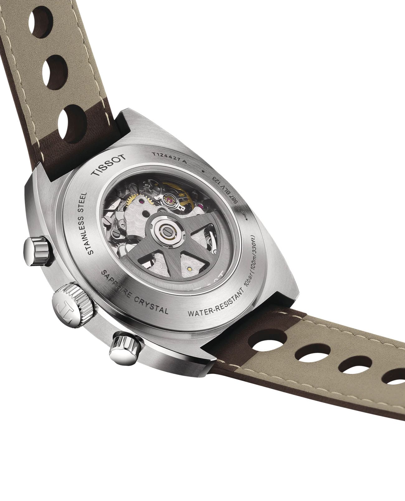 Наручные часы с оранжевыми деталями возрождают аксессуар Tissot Navigator 1973 года, спортивный хронографХронографФункция позволяет измерять отрезки времени с особой точностью: часы, минуты, секунды. Верным признаком хронографа является наличие на циферблате 3 дополнительных окошек-счётчиков. символизирует историческое партнёрство швейцарского бренда и автогоночной команды Kessel Classics. Модель выполнена в винтажном стиле, практически весь корпус матовый, исключение составляет передняя скошенная полированная поверхность. Часы оснащаются престижным автоматическим механизмом VALJOUX A05.H31 с запасом хода 60 часов и отделкой ротора женевские волны. Прозрачная задняя крышка. Коричневый ремешок с перфорацией из натуральной кожи. . Стекло из сапфира с антибликовой поверхностью. Секундомер, отображение числа. Габариты: 46,6 x 43 x 14,8 мм.