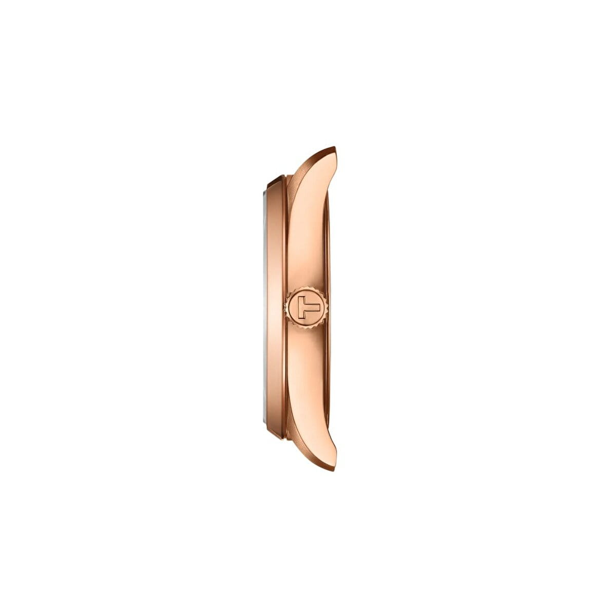 Женские кварцевые часы Tissot из коллекции T-Classic — это элегантный аксессуар с швейцарским качеством. Модель PR 100, выпущенная в сезоне Осень/Зима 2025, сочетает классический дизайн и надёжность. Корпус диаметром 34 мм и толщиной 8,3 мм выполнен из нержавеющей стали с PVD-покрытиемPVDУльтратонкое покрытие наносится в технике вакуумного напыления, сочетает в себе нитрид титана особой прочности со слоем золота или оксида хрома. Несёт в себе декоративную или защитную функцию. розового золота. Циферблат коричневого цвета оформлен индексами и стрелками розового золота. Циферблат защищён сапфировым стекломСапфировое стеклоПрочный и надёжный материал из кристалла сапфира синтетического происхождения, характеризующийся особой твёрдостью и устойчивостью к царапинам и повреждениям.. Механизм — швейцарский кварцевый калибр ETA F05.115, питание от батарейки Renata R371 со сроком службы до 68 месяцев. Заводная головка вытягивается для настройки времени. Часы оснащены стальным браслетом с застёжкой «бабочка» с кнопкамиЗастёжка "бабочка"Такой вид застёжки дополняется предохранителями, помогающими избежать случайного раскрытия браслета. Обладают изящным исполнением. , шириной 16 мм, с системой быстрого крепления и прямой фиксацией. Ремешок подходит для запястьев длиной от 140 до 190 мм. Завинчивающаяся задняя крышка обеспечивает защиту механизма. Водонепроницаемость 100 м позволяет использовать часы для плавания. Идеальный выбор для тех, кто ценит стиль, точность и швейцарское мастерство.