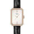 Женские кварцевые часы Tissot — это элегантный аксессуар, вдохновлённый стилем ар-деко 1920-х годов. Модель SRV сочетает геометрические формы и ретро-эстетику с современной технологией. Корпус прямоугольной формы размером 30×21,8 мм выполнен из нержавеющей стали 316L с PVD-покрытиемPVDУльтратонкое покрытие наносится в технике вакуумного напыления, сочетает в себе нитрид титана особой прочности со слоем золота или оксида хрома. Несёт в себе декоративную или защитную функцию. цвета розового золота. Циферблат перламутрового белого цвета оформлен римскими цифрами на позициях 12 и 6 часов. Циферблат защищён сапфировым стекломСапфировое стеклоПрочный и надёжный материал из кристалла сапфира синтетического происхождения, характеризующийся особой твёрдостью и устойчивостью к царапинам и повреждениям. с фасетированной огранкой, повторяющей форму корпуса. Часы оснащены чёрным кожаным ремешком из глянцевой кожи с эффектом лака и классической пряжкой. Благодаря системе быстрой замены ремешок можно легко поменять без использования инструментов. Водонепроницаемость 50 м позволяет использовать часы в повседневных условиях. Идеальный выбор для тех, кто ценит стиль, наследие и швейцарское качество.