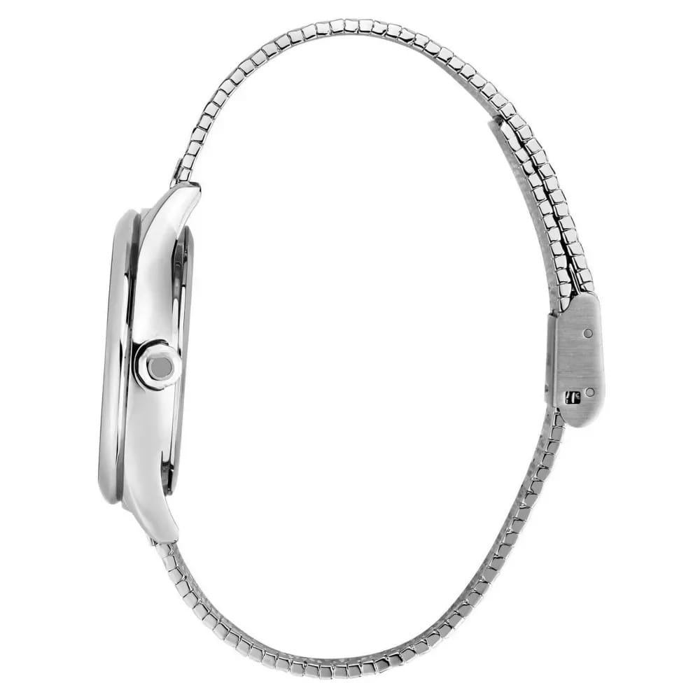 Итальянские женские часы Trussardi T-Vision R2453170505 - это стильный женский аксессуар, который сочетает элегантный дизайн и практичность. Корпус выполнен из нержавеющей стали, что обеспечивает долговечность и утончённый внешний вид. Надежное минеральное стеклоМинеральное стеклоМинеральное стекло представляет собой искусственно выращенный минерал кварца. Такое стекло отличается особой устойчивостью к повреждениям и царапинам. Уступает по некоторым качествам сапфировому стеклу. защищает циферблат от царапин и обеспечивает долговечность. Корпус и циферблат украшены кристаллами. Модель оснащена кварцевым механизмом, обеспечивающим высокую точность хода. Окошко даты в положении 3 часов. Браслет из нержавеющей стали с частичным IP-покрытиемIP-покрытиеМетод ионного напыления. Демонстрирует повышенную устойчивость к истиранию, окислению и химическим веществам. Под воздействием высокого давления и температуры около 1500°C молекулы металла надёжно соединяются с частицами корпуса часов. с раскладным замкомРаскладной замокДанный вариант застежки используется только на часах с металлическим браслетом. Отличительная особенность такого крепления в том, что длина браслета становится универсальной и вы можете самостоятельно отрегулировать нужный вам размер – застежка просто двигается по браслету часов. обеспечивает комфортное ношение. Стрелки и метки оснащены люминесцентным покрытиемЛюминесцентное покрытиеПозволяет считывать показания времени в темноте. Производители наносят на стрелки, часовые индексы, безель или поверхность циферблата светонакопительный состав, дающий холодное свечение., обеспечивающим отличную видимость даже при слабом освещении. Водозащита 50 метров позволит защитить корпус от случайных брызг или капель дождя. Эта модель – отличный выбор для тех, кто ищет сочетание стиля, качества и функциональности. Часы станут не только полезным аксессуаром, но и выразительным элементом вашего имиджа.